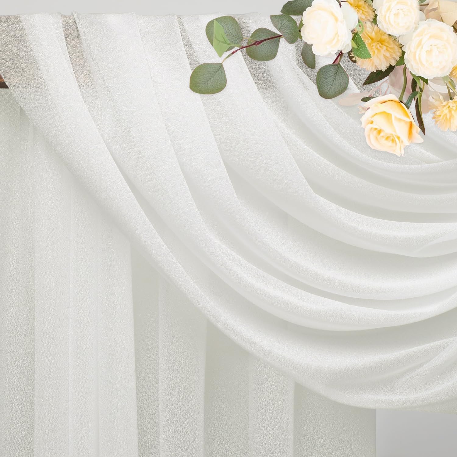 - 【Wedding Arch Draping Fabric】Package includes 1 panel white sheer drapes, each panel is 28.7 inches wide and 20 ft long. The length of wedding arch draping fabric is long enough to fit different size arch decoration. This polyester sheer drapery backdrop can create a romantic and elegant atmosphere on your party.