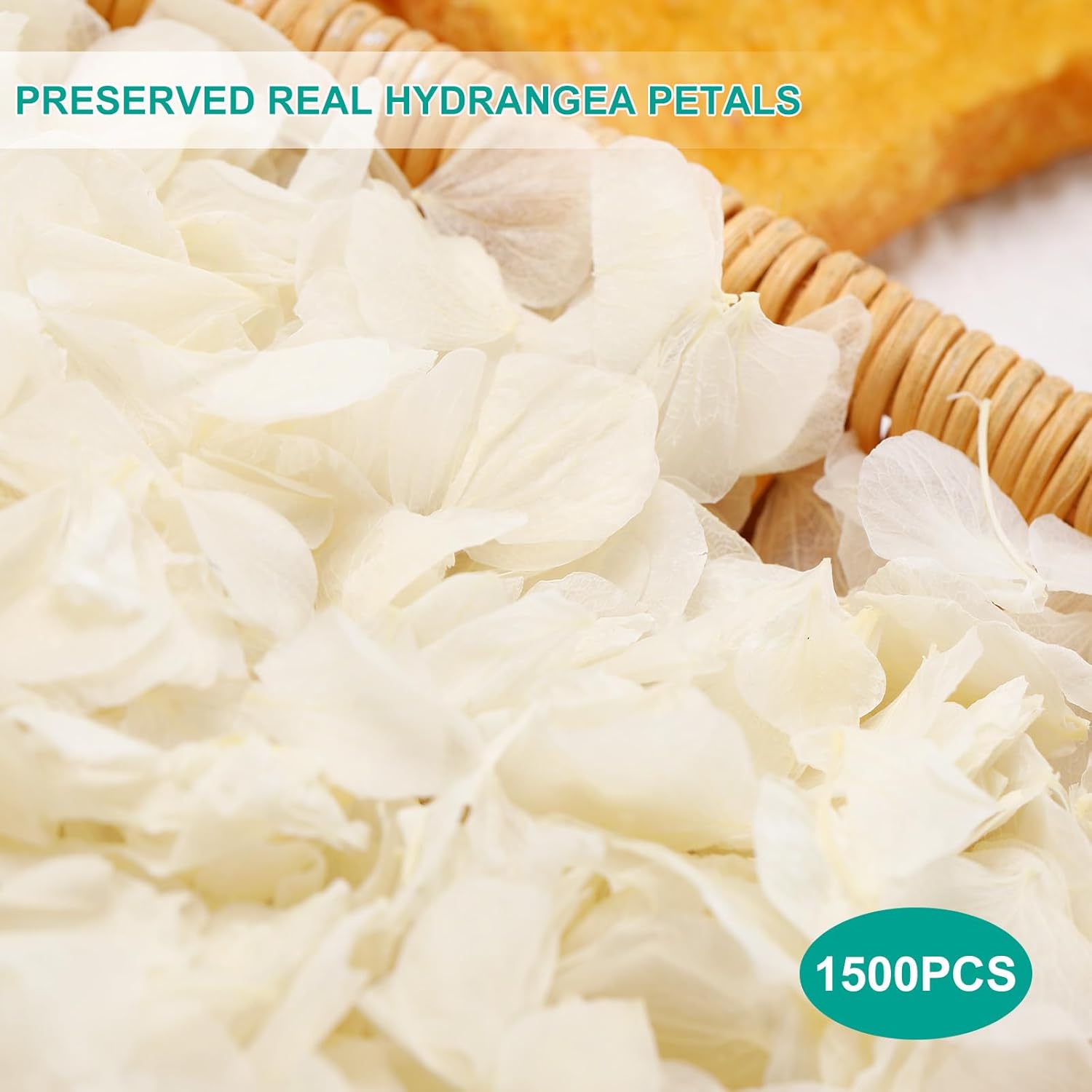 - NATURAL REAL FLOWER PETALS: Each package contains about 1500 well-preserved white petals. Your petals are made from high-quality fresh hydrangea flowers and special preservation techniques. Unlike artificial petals, they are real flowers that can be last 1 to 3 years