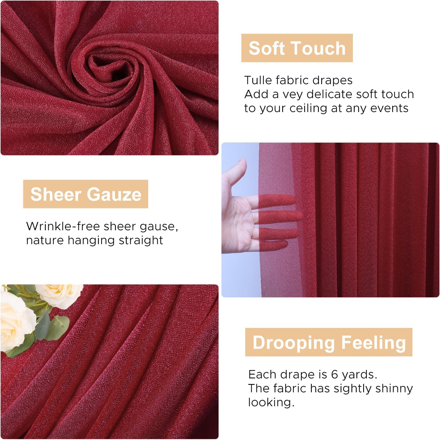 Wokceer Burgundy Wedding Arch Draping Fabric Backdrop 3 Panels 28.7" X 20FT Sheer Drapes Fabric for Wedding Arbor Ceremony Party