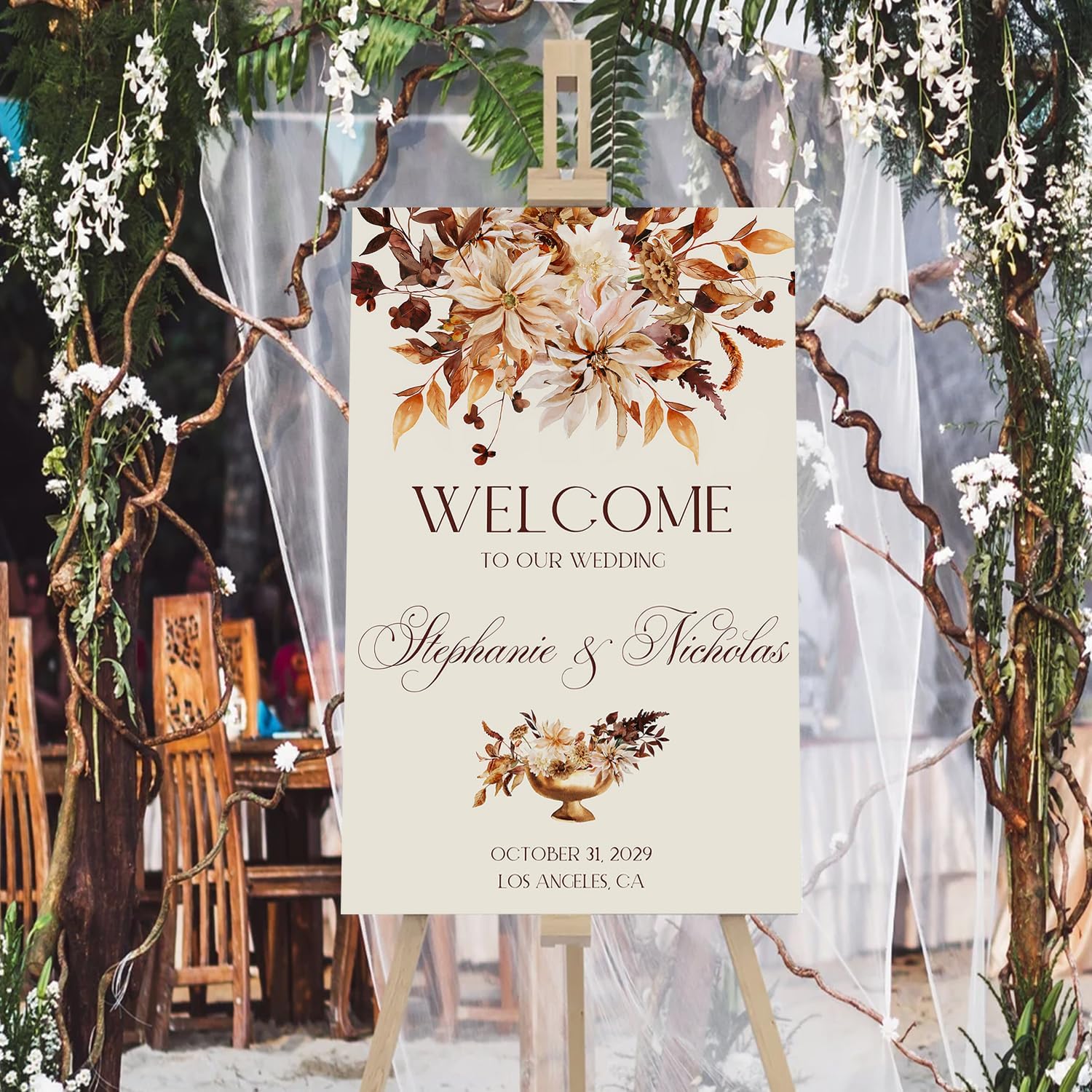 - A stunning choice for those planning a Gothic-inspired wedding or a Halloween-themed celebration. Whether you're exchanging vows on All Hallows' Eve or simply love the allure of Gothic aesthetics, this welcome sign will captivate your guests and make a bold statement.