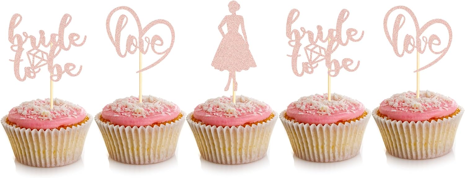 - Unique Design: This 24PCS Bride to Be Cupcake Toppers with Heart Dress to make your Wedding Engagement party stand out! The delicate design like your a match made in heaven makes your dessert look more romantic. Shimmering glitterscreate a lovely and sweet feel for your wedding party