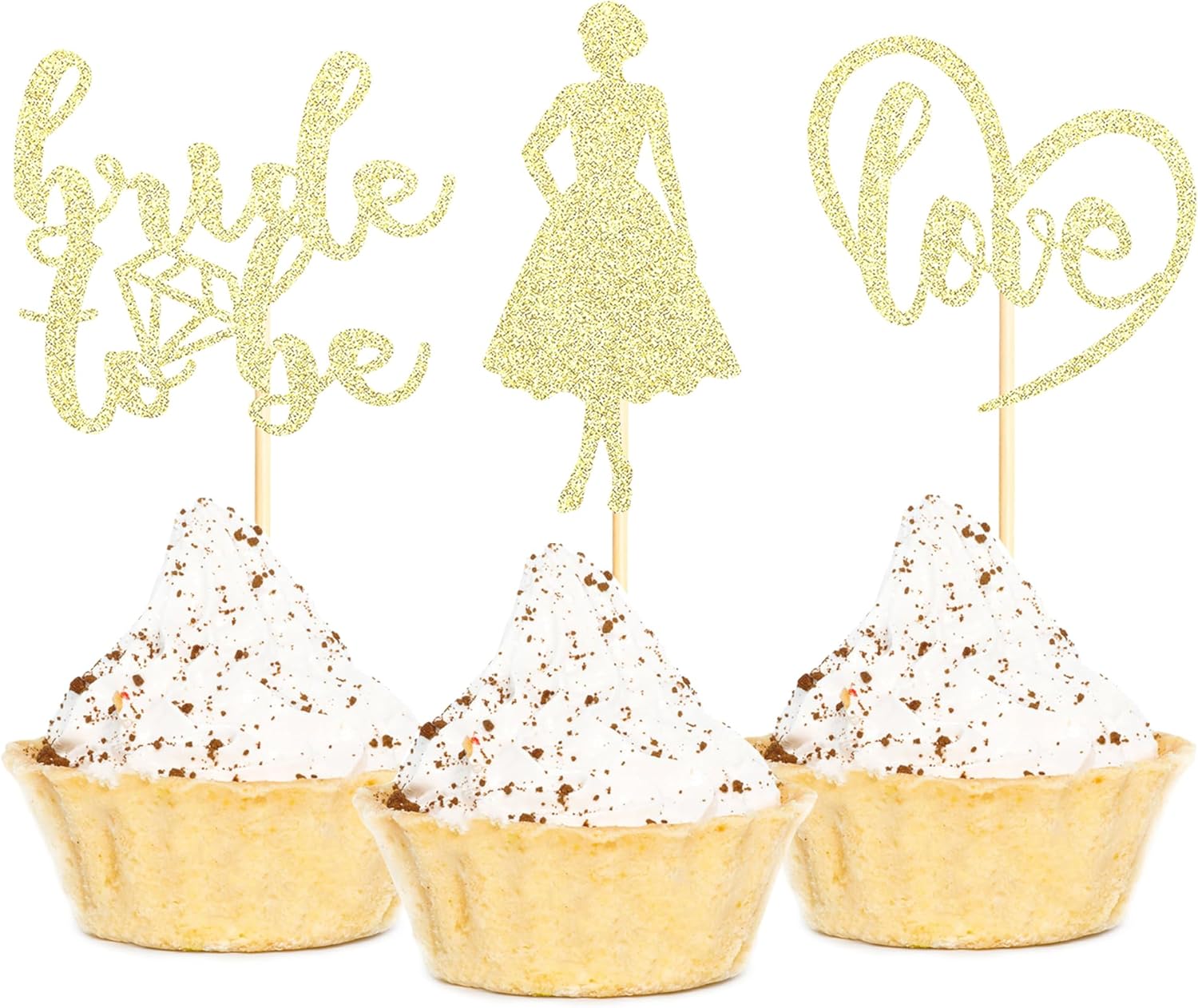- Unique Design: This 24PCS Bride to Be Cupcake Toppers with Heart Dress to make your Wedding Engagement party stand out! The delicate design like your a match made in heaven makes your dessert look more romantic. Shimmering glitterscreate a lovely and sweet feel for your wedding party