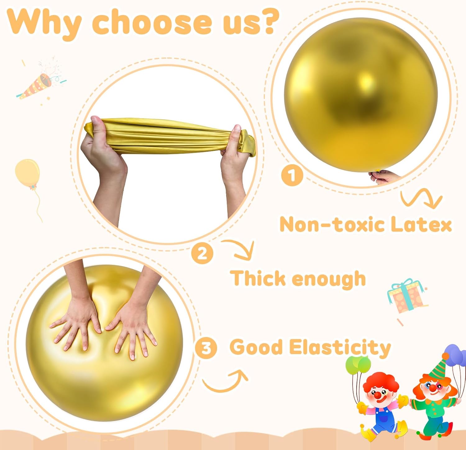 - 【Size& Quantity】 Each sets contains 4pcs 36 inch giant metallic gold balloons; big balloons are safe ,heavy thick, bouncy and Eco-friendly latex material which is durable and long-lasting quality ,these big round balloons Thicker and much strong than typical balloons for longer lasting fun.