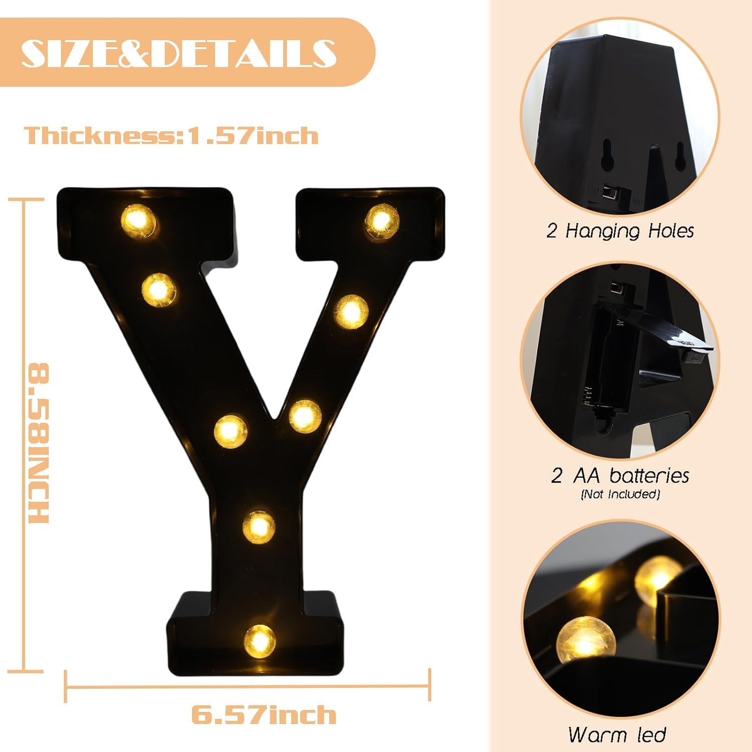 - 【Easy to Operate】 Our led letter lights are easy and convenient to use, with no wiring or outlet required. Simply need 2 AA batteries (not included in package). You can control on/off the switch behind the letter to turn on/off the letter lights.