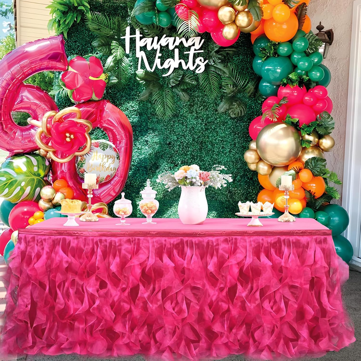 Luxury Organza Mesh Table Skirt Draping Floating Romance - Perfect for Bridal Showers, Birthday Weddings - Clear Flowing Decoration for a Wonderful Main Cake Table (Hot Pink-6ft, 72" L×30" H)