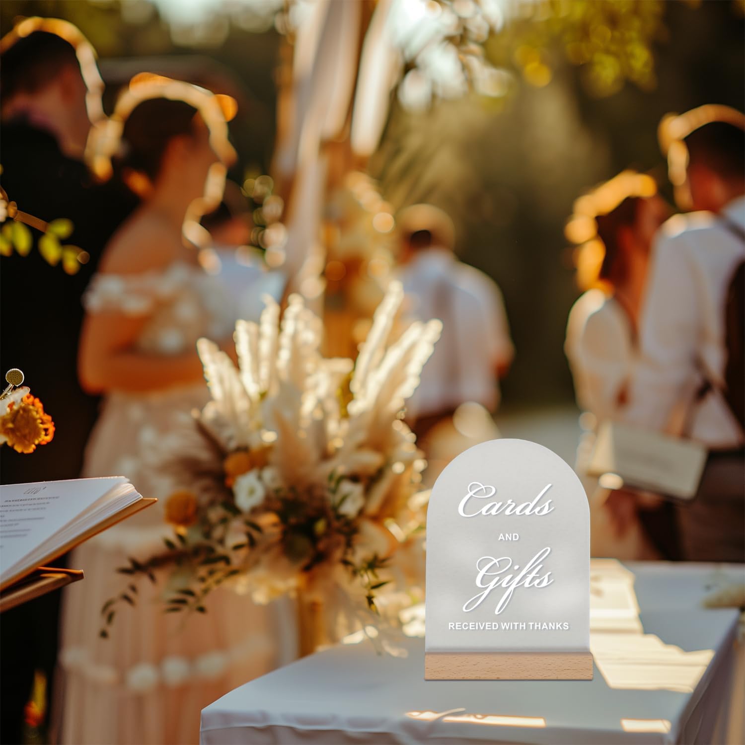 - Premium Materials - Our acrylic wedding sign features 1/8-inch thick frosted acrylic, which is long-lasting. Includes a 5x7 inch cards and gifts table sign and a sturdy wood stand made from German beech wood, ensuring stable support and durability. The white text is UV printed, making the font clear and durable. Ideal for use as both wedding decor and keepsakes, it can be reused for future events.