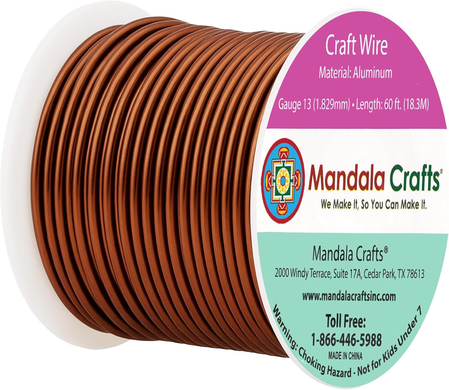 Mandala Crafts 13 Gauge Anodized Aluminum Craft Wire for Jewelry Making - 60 FT Colored Flexible Brown Wire - Bendable for Bonsai Armature Crafting Sculpting