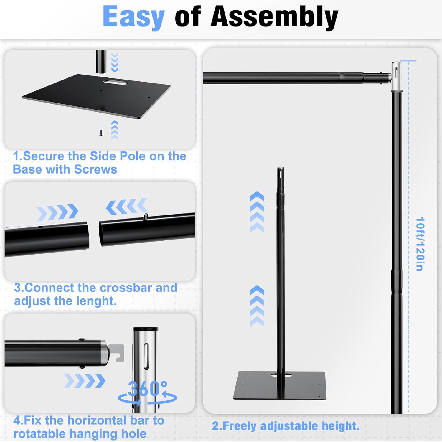 - DIY Length and Shape:The both pole ends of top rods connection is special designed to make it can be hung in four directions, you can customizing the size and shape to fit various scenarios and style. It is a idea banner stand for photographers, event planners