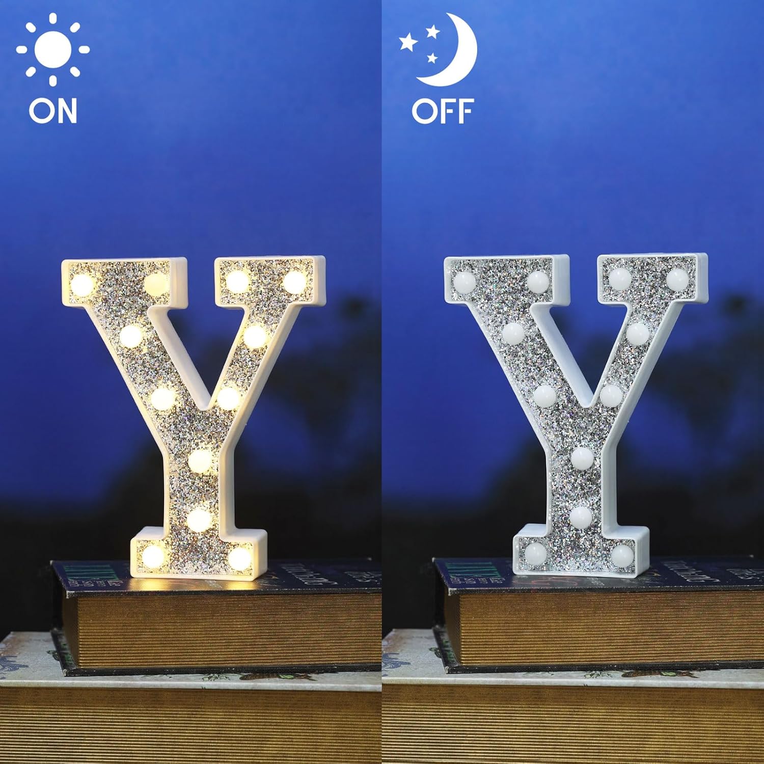 - π‘ Elegant Glitter Light-Up Letters with Silver Diamond Finish: These LED marquee light up letters feature a stunning glitter effect combined with a sophisticated silver diamond surface. Including all 26 alphabet letters and 10 numbers, these light up letters bring sparkle and elegance to any space, making them the perfect light letters for party decor, especially as light up letters for table settings or wall accents.