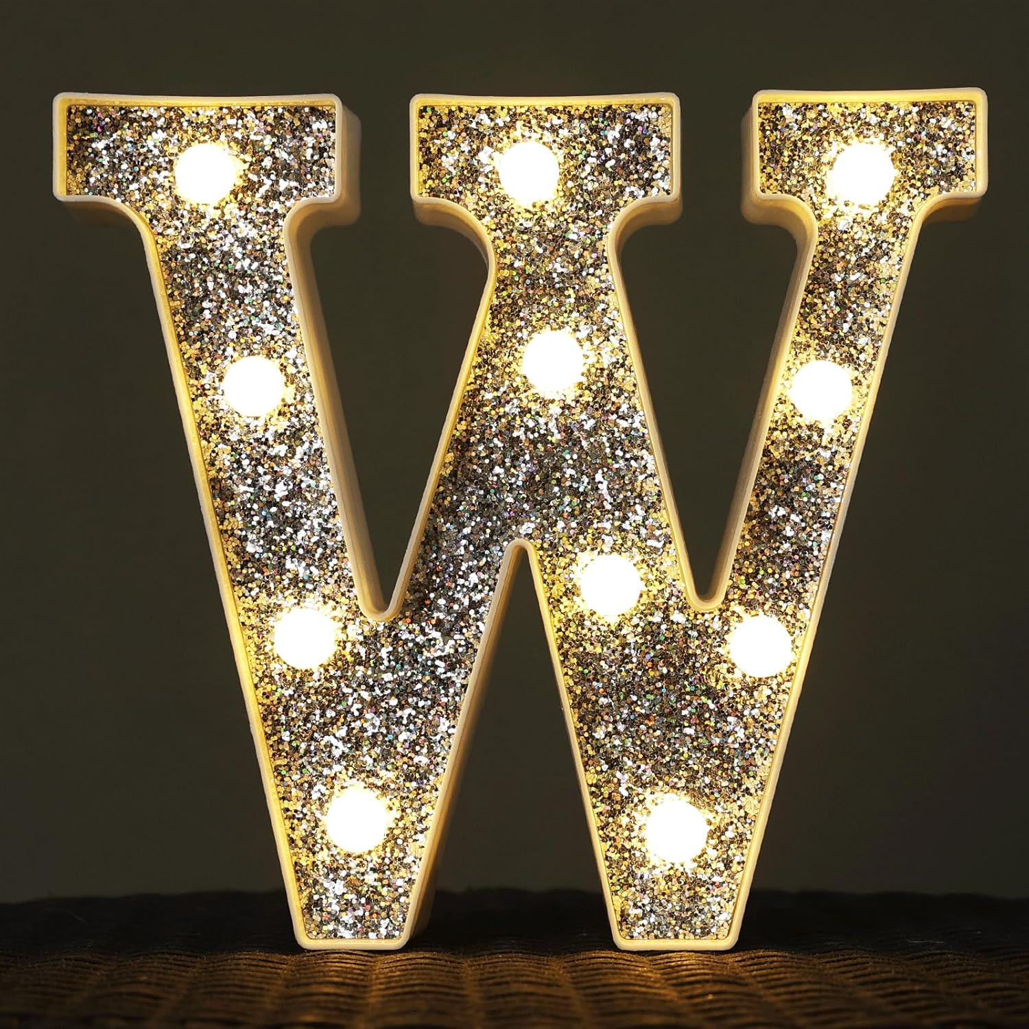 Light Up Letters - Marquee Decor, Glitter Alphabet & Number Signs for Prom, Events or Engagement Parties - Letter W