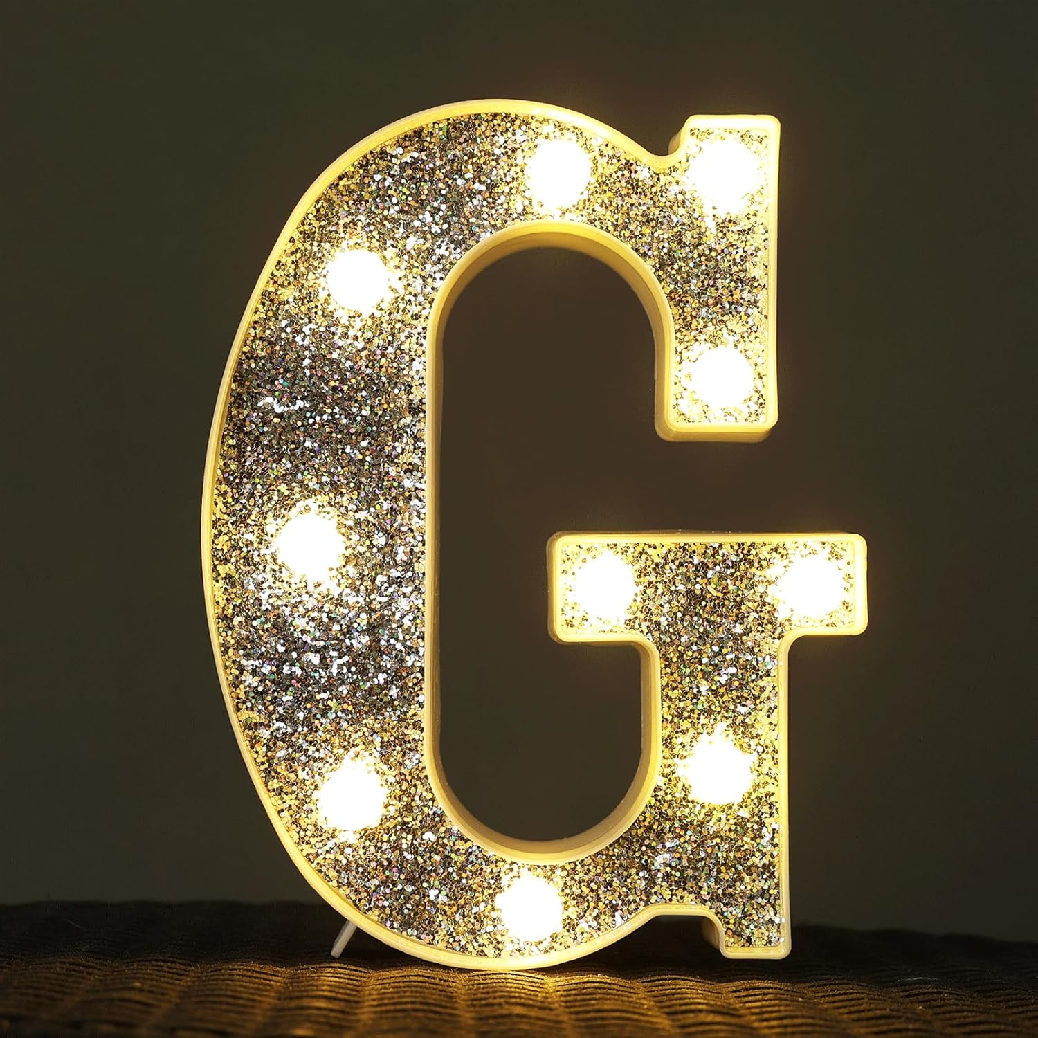 Marquee Light Letters for Table Decorations, Glitter Light Up Signs for Prom, Events, or Engagement Party Decor, Featuring Alphabet & Number Lighted Letters