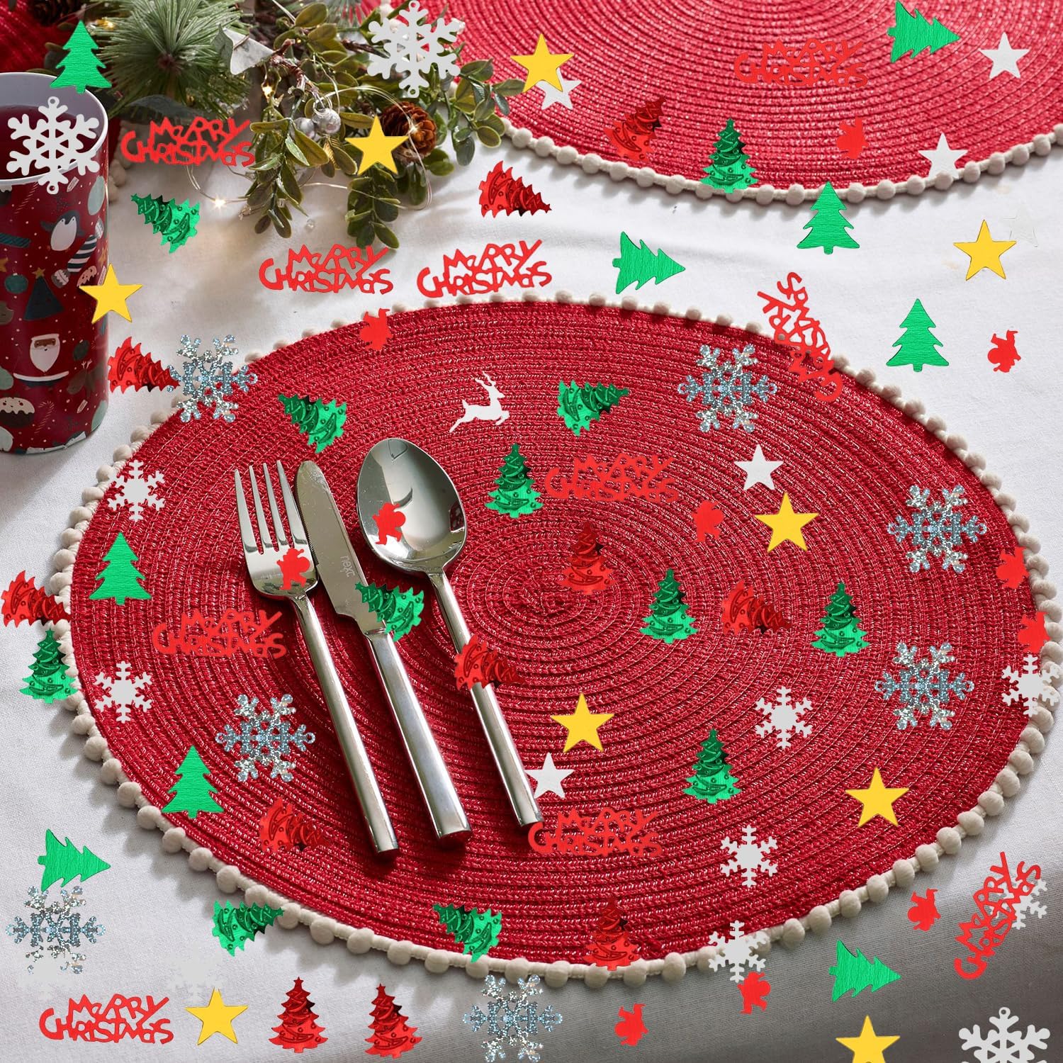 - Mixed Christmas Designs:The metallic Christmas confettis are designed with various patterns and bright color ,like nowflake,reindeer,santa,Christmas tree,"MERRY CHRISTMAS" and star,making them ideal for adding a charming touch to your Christmas decorations.