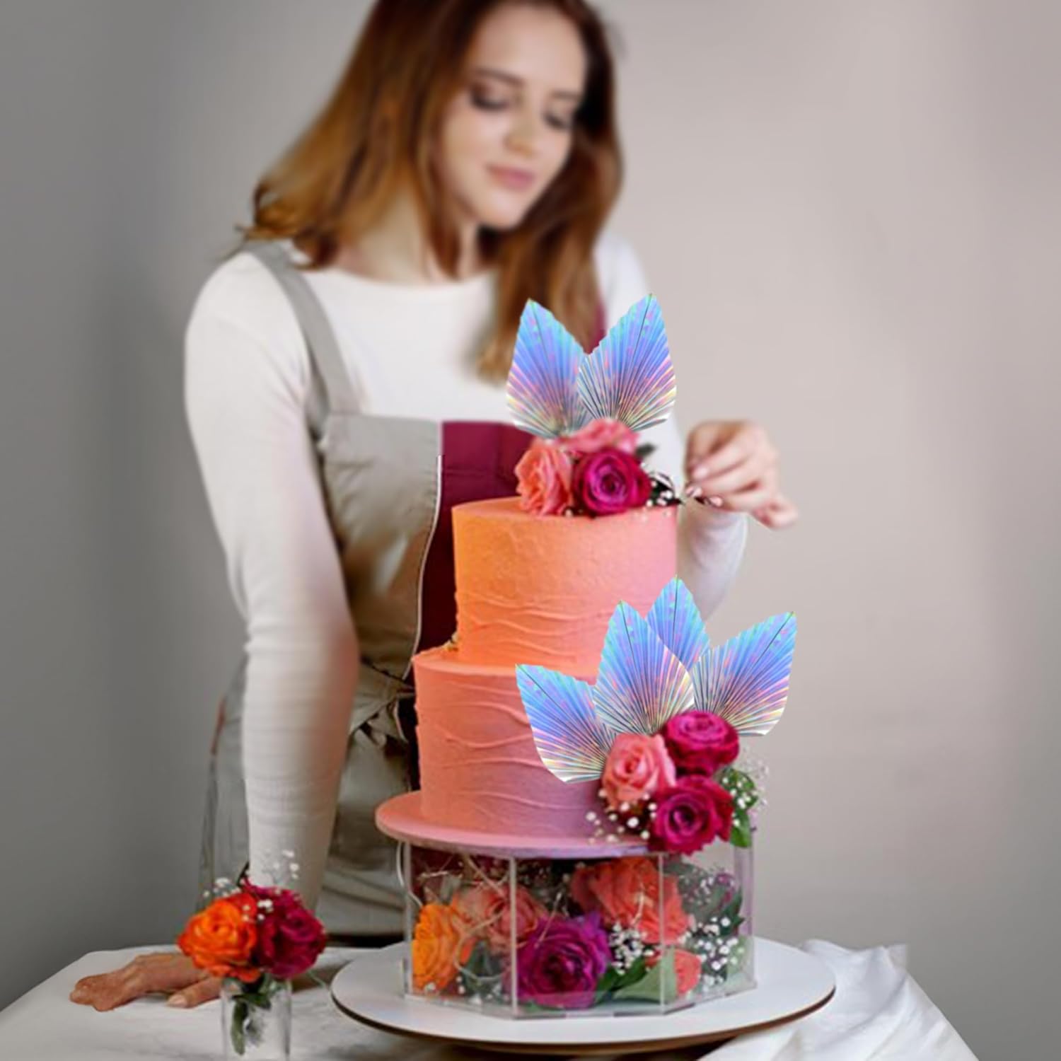 - -Package included: 6Pcs Paper Palm Fan Cake Toppers. Comes with unassembled, so you can insert into your cake with stick, which make your cake more interesting.