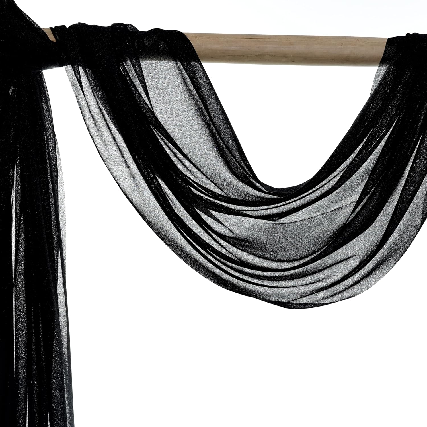 VDS Pack of 2 Panel (30 Inch X 40 Feet) Wedding Arch Draping Fabric Sheer Chiffon Fabric Drapery for Wedding Ceremony Reception Swag Backdrop Canopy Chuppah ARBO Altars Decoration (Black)