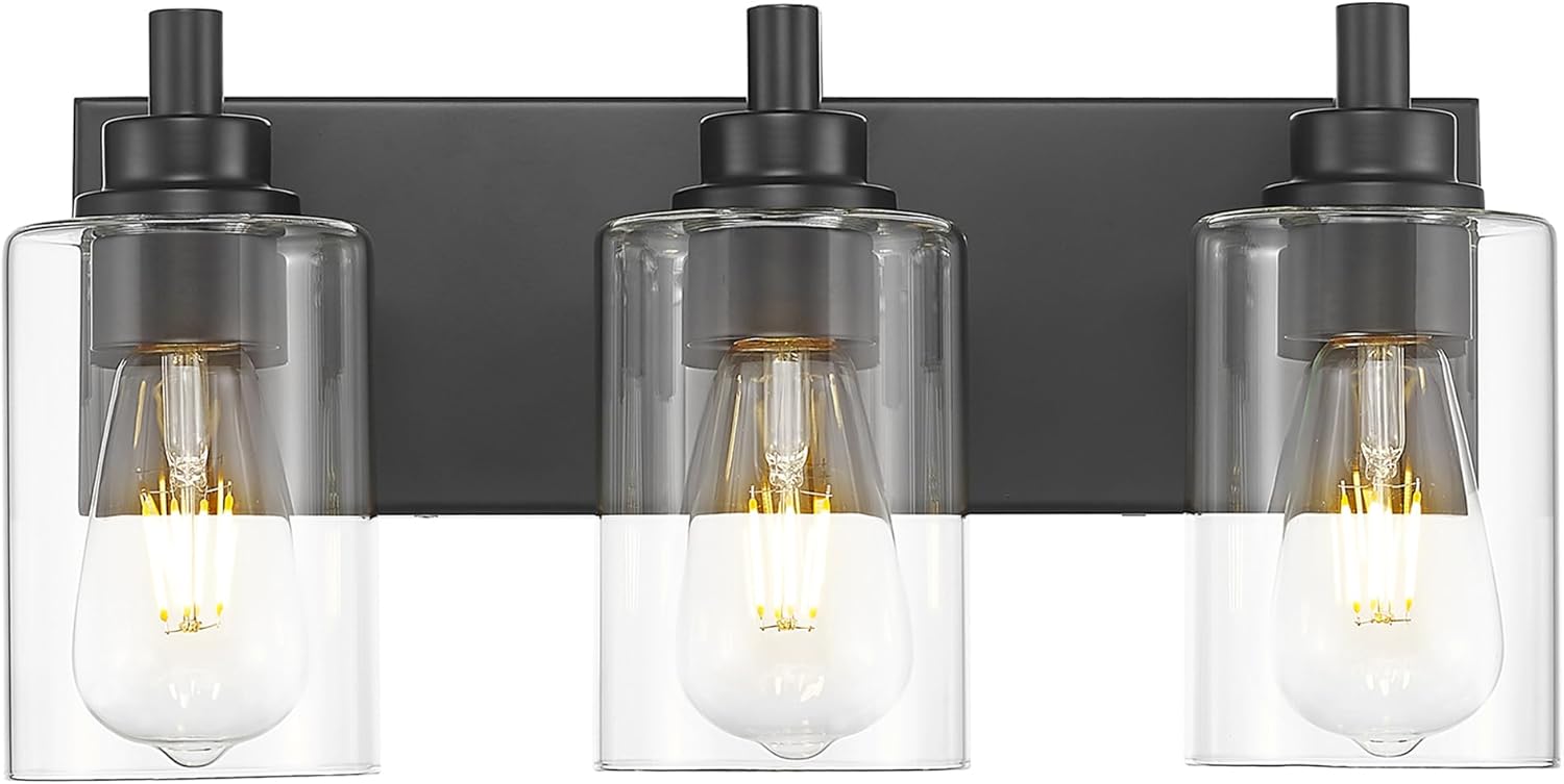- Inspired Design: This 3-light bathroom light fixtures over mirror features a matte black metal frame and elegant cylinder clear glass shades, seamlessly fitting modern minimalist decor. You can install it upwards or downwards for versatile style