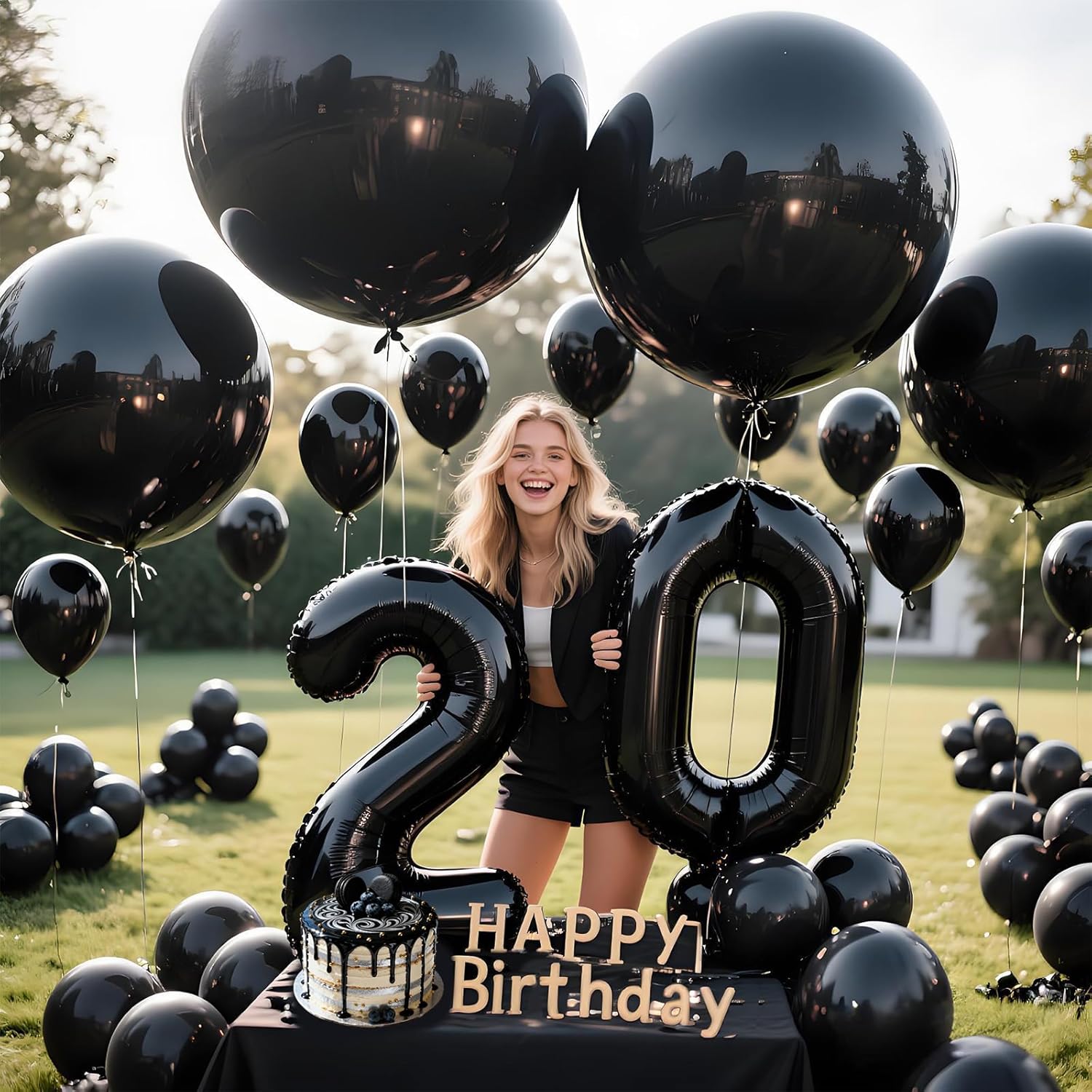 KAWKALSH Black Balloons 9pcs 36 Inch Extra Large Big Jumbo Giant Matte Black Latex Helium Balloons for Graduation Halloween New Year Anniversary Birthday Retirement Party Decorations