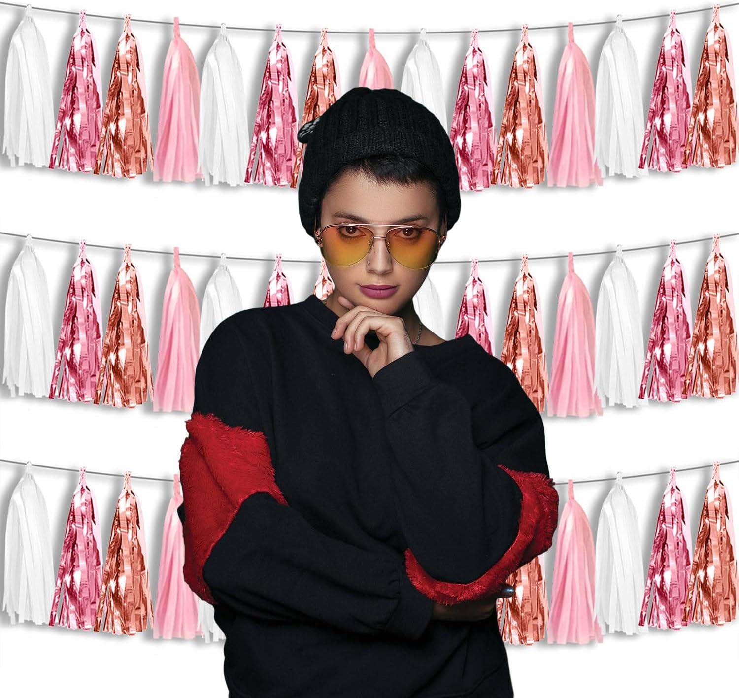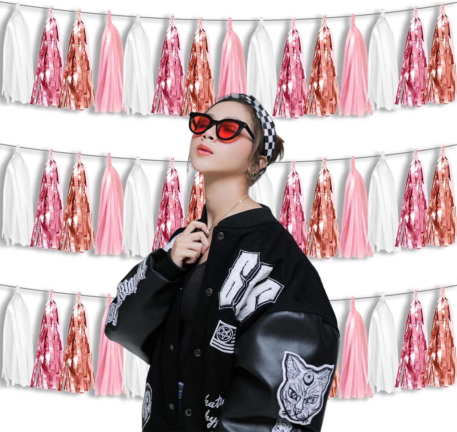 - 【Package Includes】The total length of the rose gold pink white birthday tassels banner is 30 feet, divided into 3 strips, each 10 feet long. Each banner contains 15 tassels, and each tassel measures 14 inches, for birthday decorations many occasions uitable for Patriotic display, Homecoming Float, Christmas Float, ecorative metal trailers, graduation floats etc