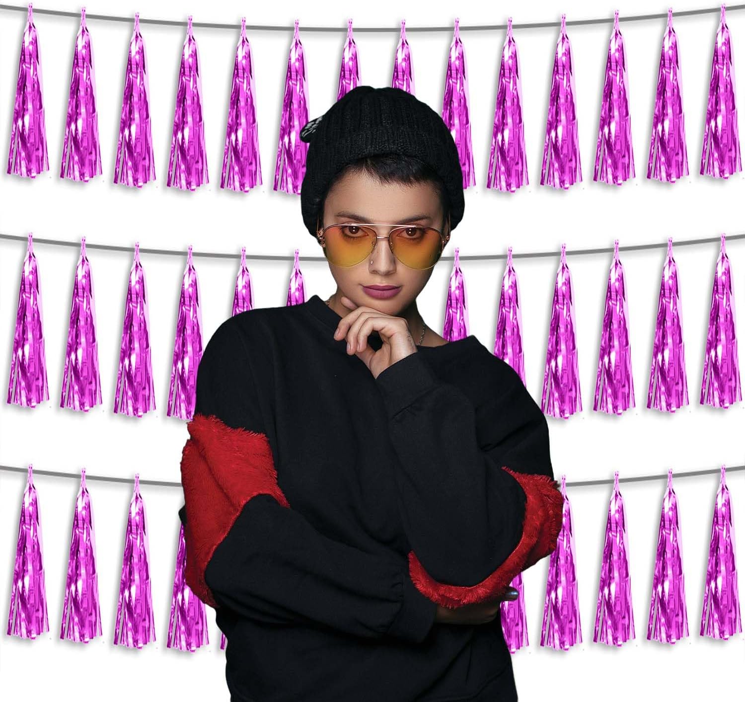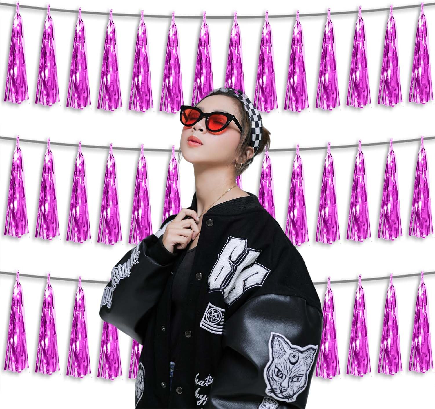 3P Metallic Fringe Banner Garland Foil Tinsel Streamer Backdrop Banners for Parties, Wall Hanging Curtain Parade Floats,Graduation Decorations, Wedding Party Decoration(Hot Pink)