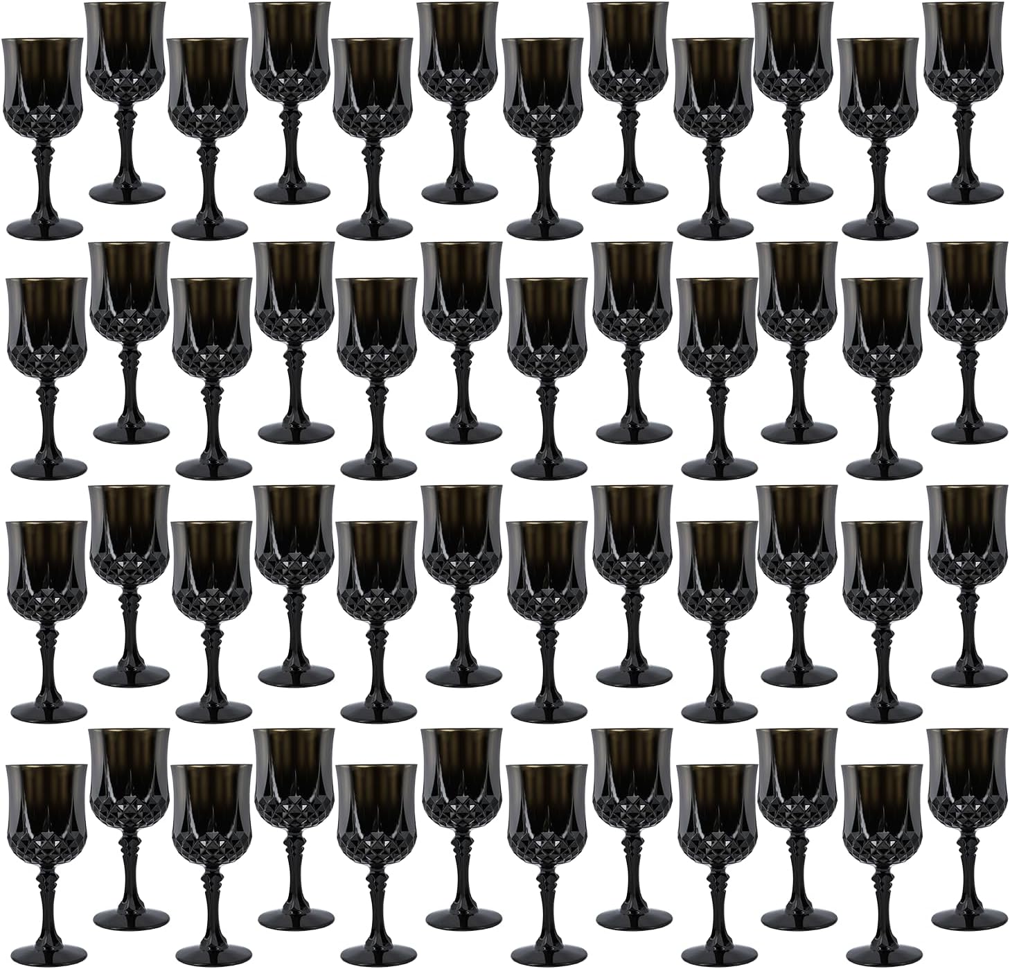 - 🍷🍷🍷【Product Description】 This set includes 48 retro-style black party plastic wine glasses, providing ample quantity to meet your daily use and replacement needs. The elegant and sophisticated design makes your wedding reception unique
