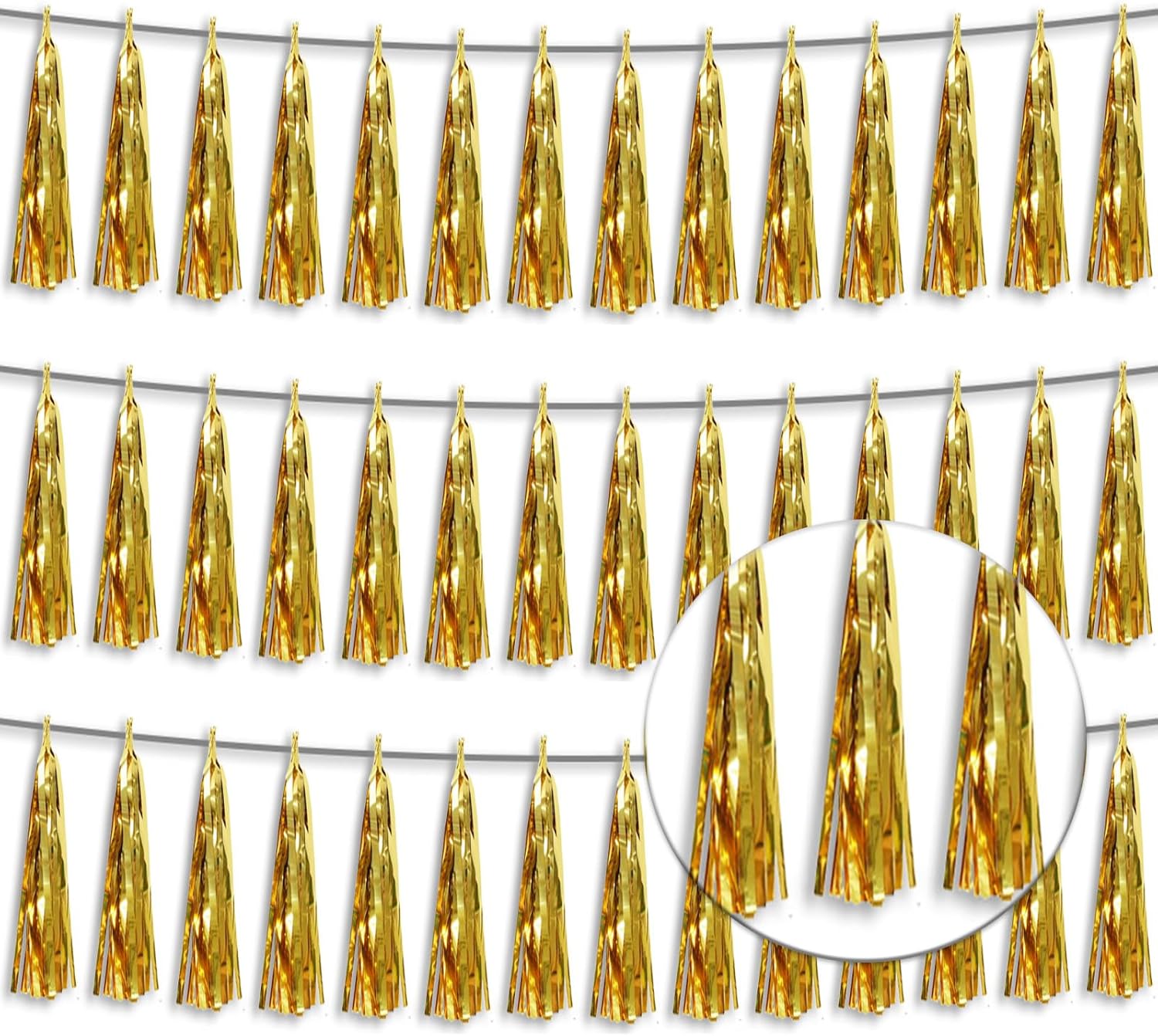 - 【Package Includes】The total length of the gold birthday tassels banner is 30 feet, divided into 3 strips, each 10 feet long. Each banner contains 15 tassels, and each tassel measures 14 inches, for birthday decorations many occasions uitable for Patriotic display, Homecoming Float, Christmas Float, ecorative metal trailers, graduation floats etc