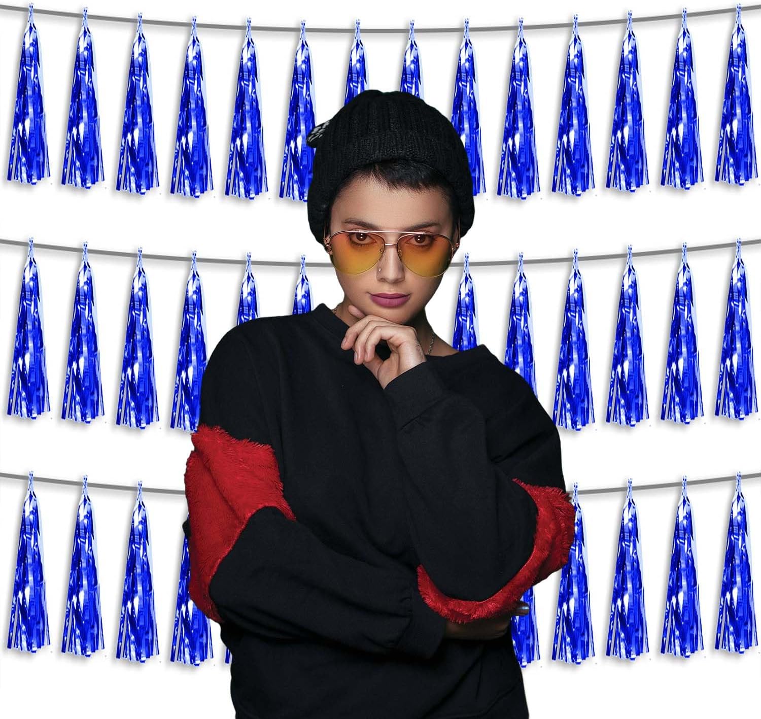 3P Metallic Fringe Tassel Banner Garland Foil Tinsel Streamer Wall Hanging Curtain Backdrop Banner for Parade Floats, Graduation Decorations, Retirement Party Decoration(Blue