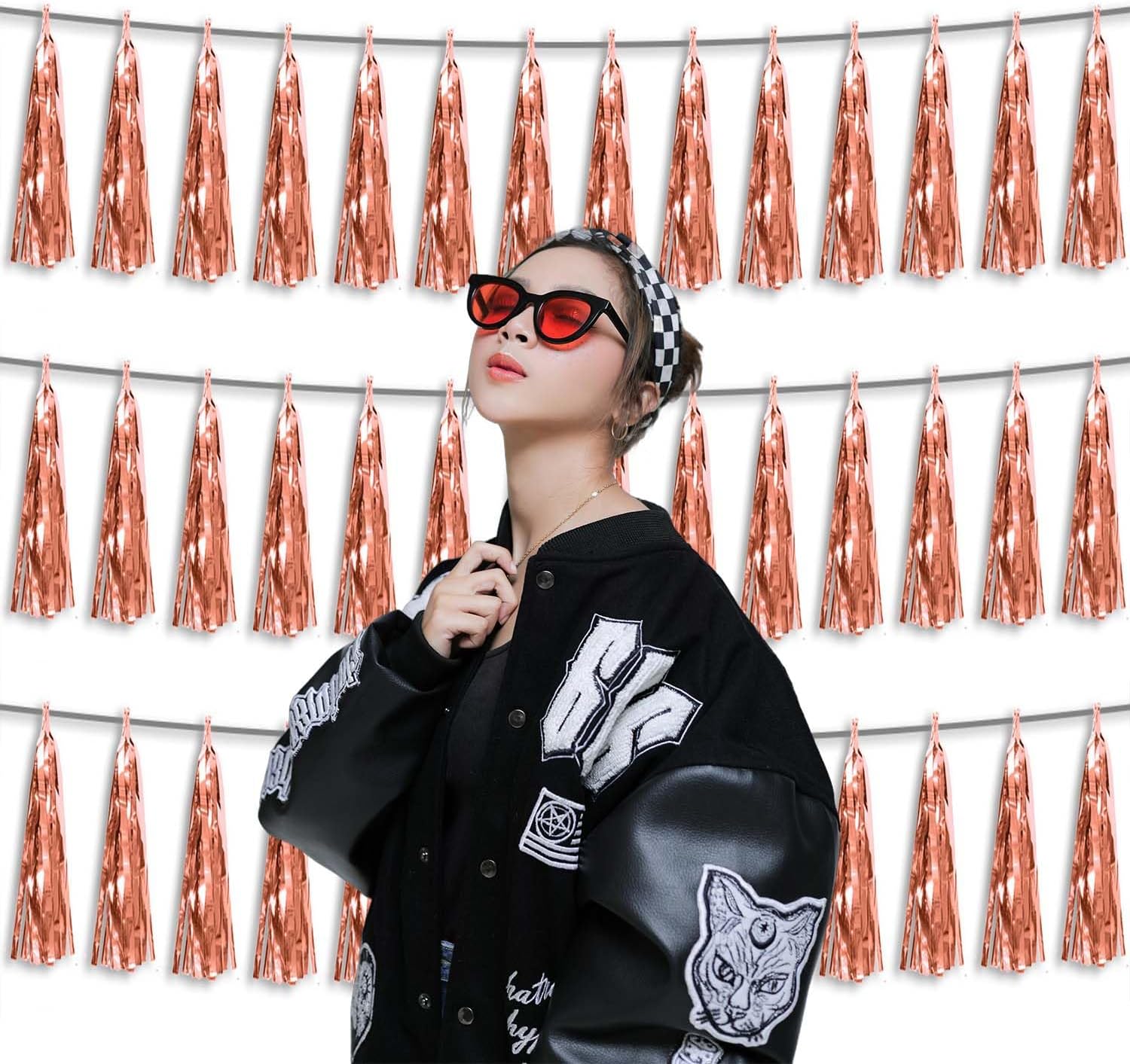 - 【Package Includes】The total length of the rose gold birthday tassels banner is 30 feet, divided into 3 strips, each 10 feet long. Each banner contains 15 tassels, and each tassel measures 14 inches, for birthday decorations many occasions uitable for Patriotic display, Homecoming Float, Christmas Float, ecorative metal trailers, graduation floats etc