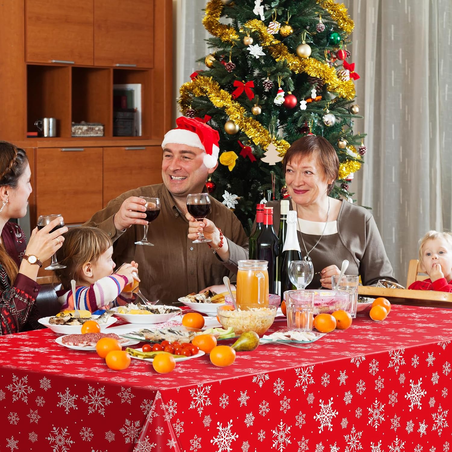 - Extra large size:these red snowflake Christmas party tablecloth measures approx. 137x274cm/54X108 inch, which fits for 8 feet long tables that can accommodate 8-10 people, Itโs large enough for your to hold a winter holiday and Christmas theme party with your family and friends to share happiness
