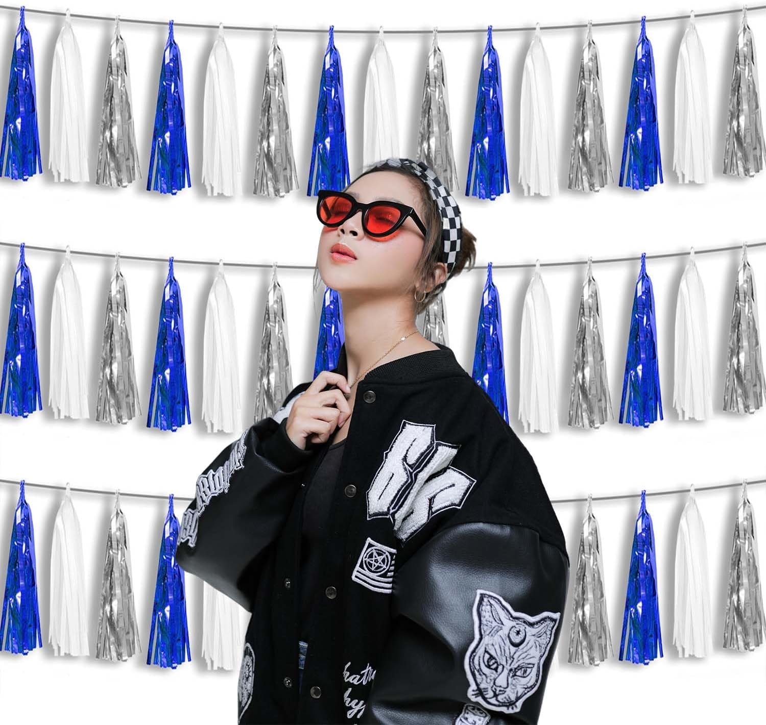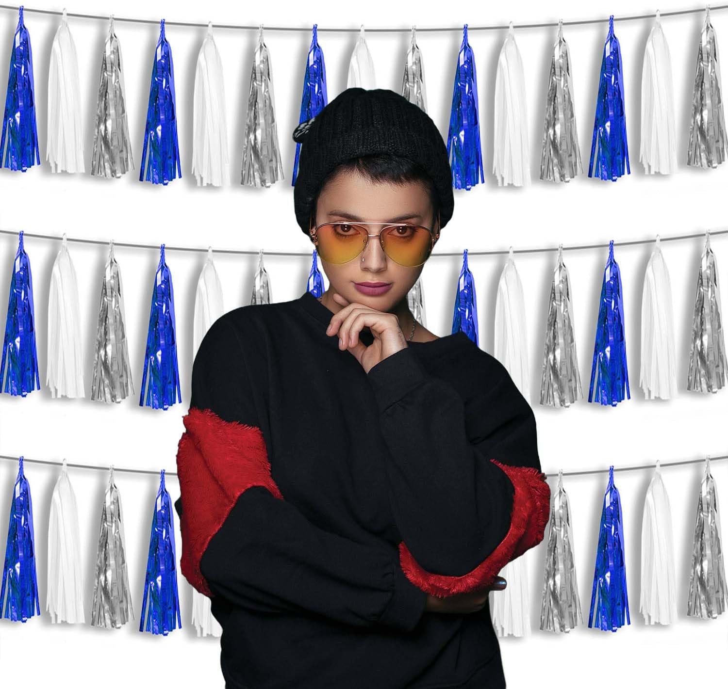 - 【Package Includes】The total length of the navy blue white silver birthday tassels banner is 30 feet, divided into 3 strips, each 10 feet long. Each banner contains 15 tassels, and each tassel measures 14 inches, for birthday decorations many occasions uitable for Patriotic display, Homecoming Float, Christmas Float, ecorative metal trailers, graduation floats etc