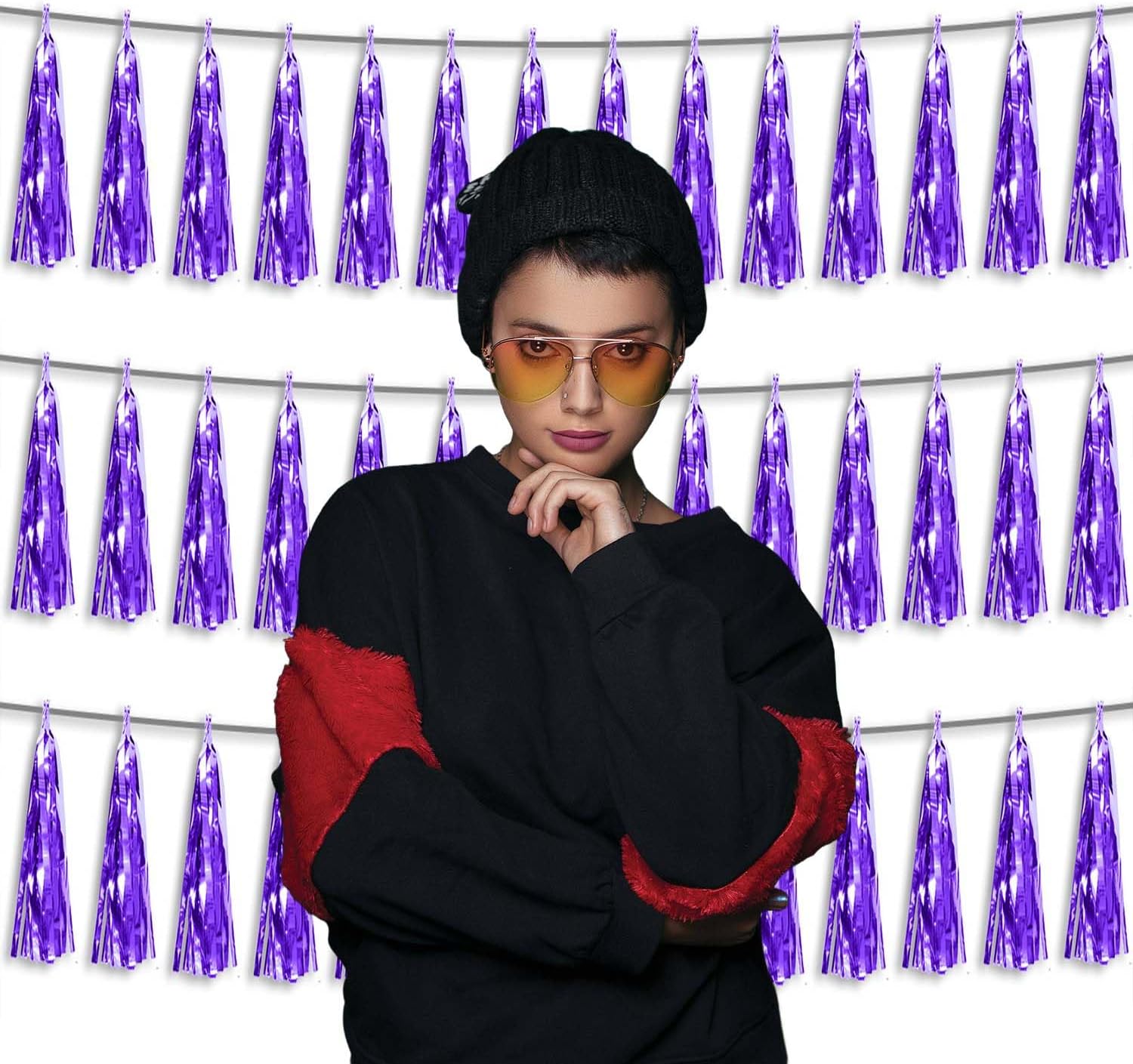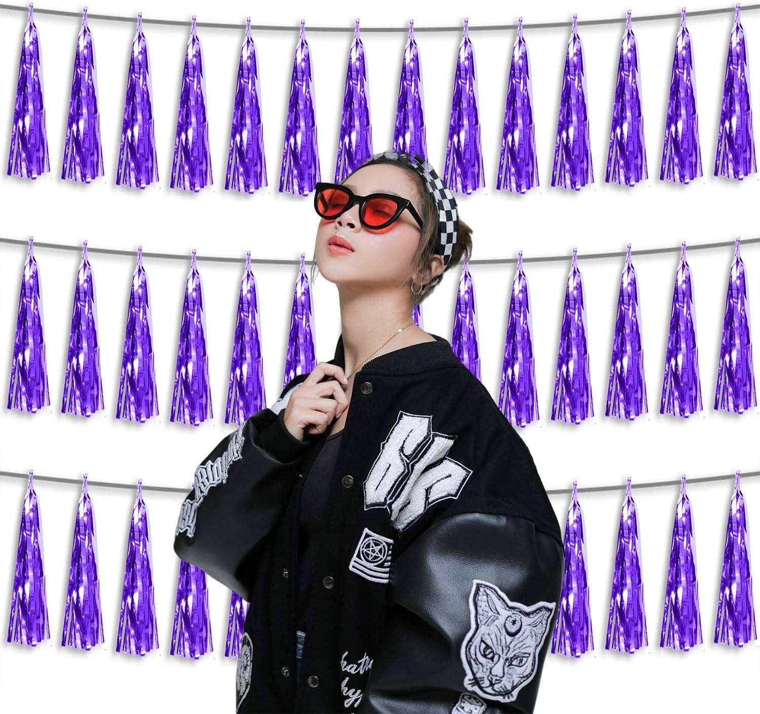 3P Metallic Fringe Tassel Banner Garland Foil Tinsel Streamer Wall Hanging Curtain Backdrop Banner for Parade Floats,Graduation Decorations, Father's Day Party Decoration(Purple)