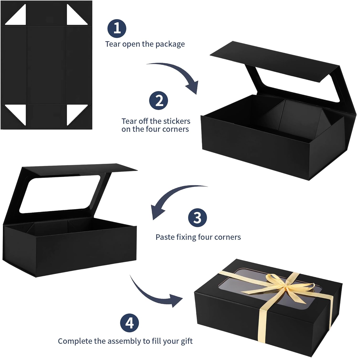- 💝SUPERIOR FUNCTIONALITY: The beautiful gift box allows you to wrap your gift without having to find wrapping paper, ribbon or tape. Magnetic gift box with window can better display your gifts.This simple gift box will enhance your gift and turn it into a unique showpiece.