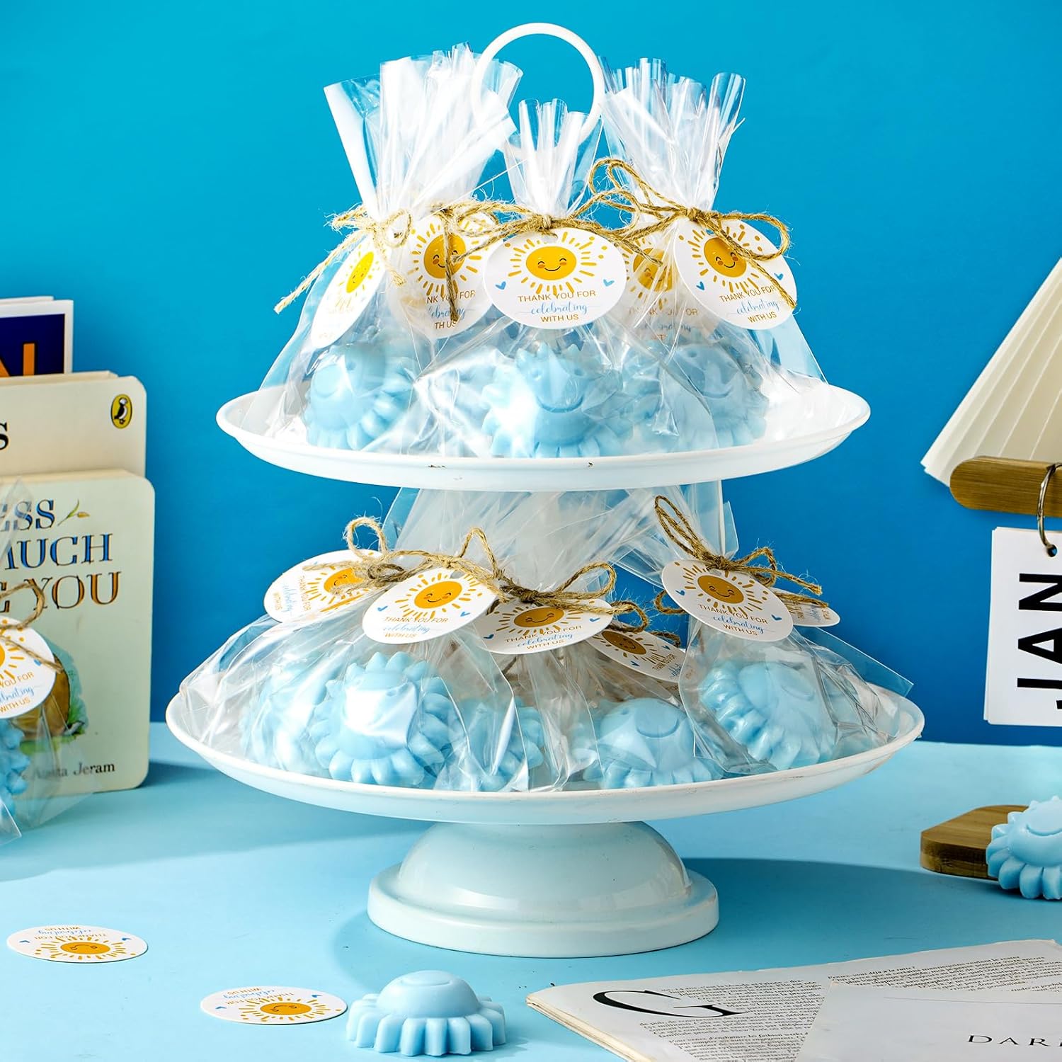 - Package Includes: there are 20 baby shower decorative soaps, and each soap comes individually wrapped with opp bags and tied with colored ribbon, easy for carrying and preservation, can be used as Sunshine Party, Here Comes the Son party or wedding favors, baby shower favors and other baby theme party favors