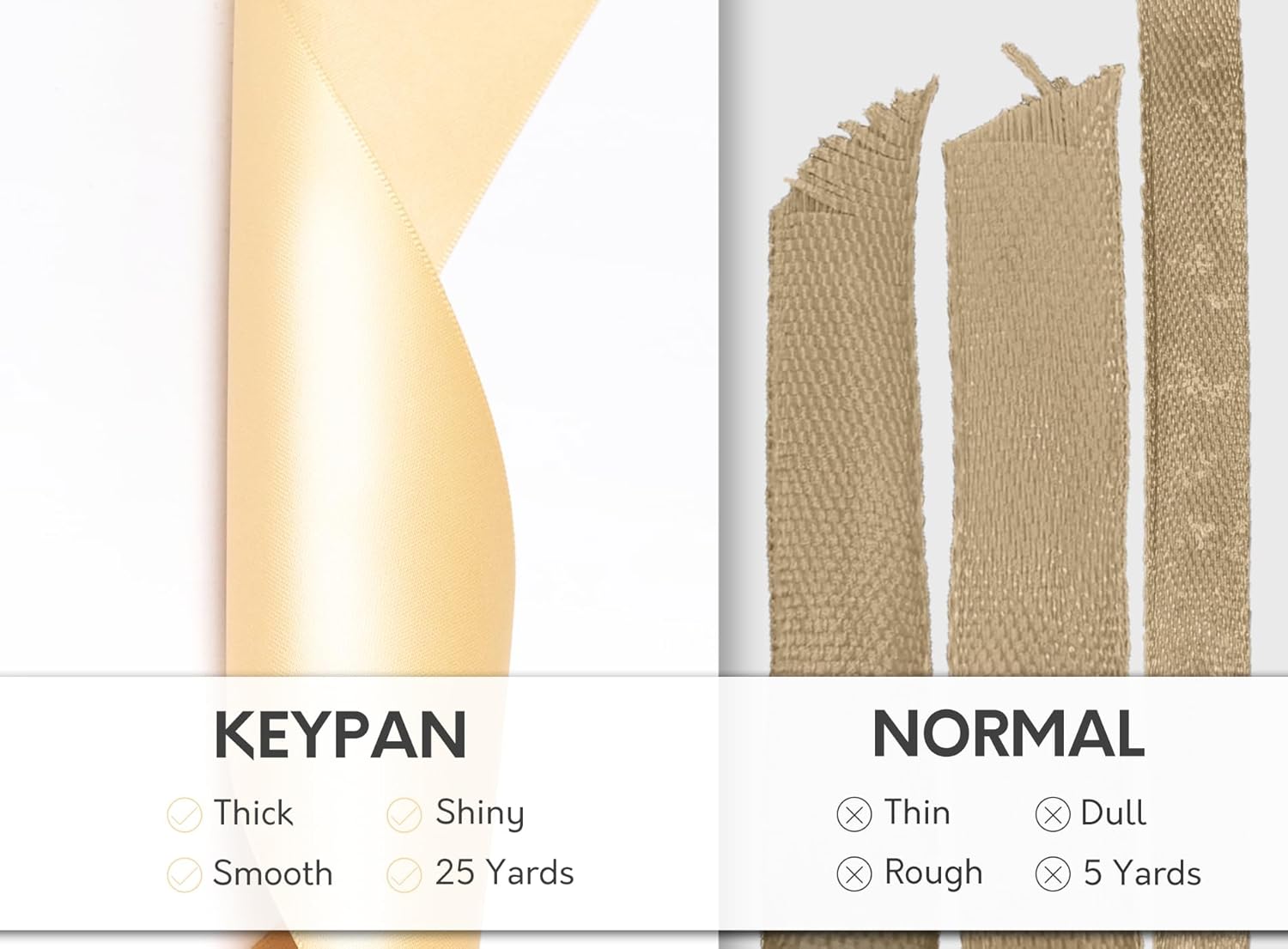Champagne Satin Ribbon 2.5 Inch Double-Faced Polyester Ribbons 25 Yards for Hair Bows Gift Wrapping Crafts Floral Bouquet Wedding Invitations