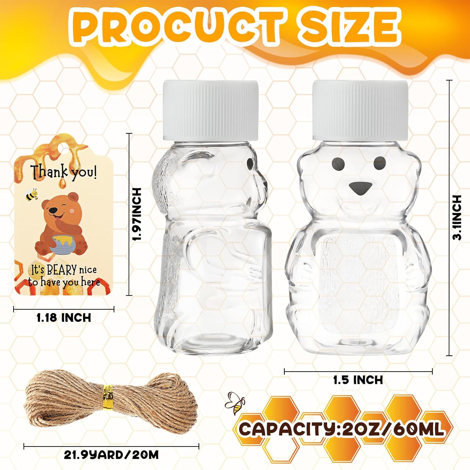 - Lovely Plastic Honey Bear Bottle: the package includes 96 plastic honey jars with white lid, about 2 oz/ 60 ml, 96 tags, and 2 rolls of rope (about 22 yd/ 20 m per roll); The proper size makes them adorable and attractive at your party, and you can share them with your family