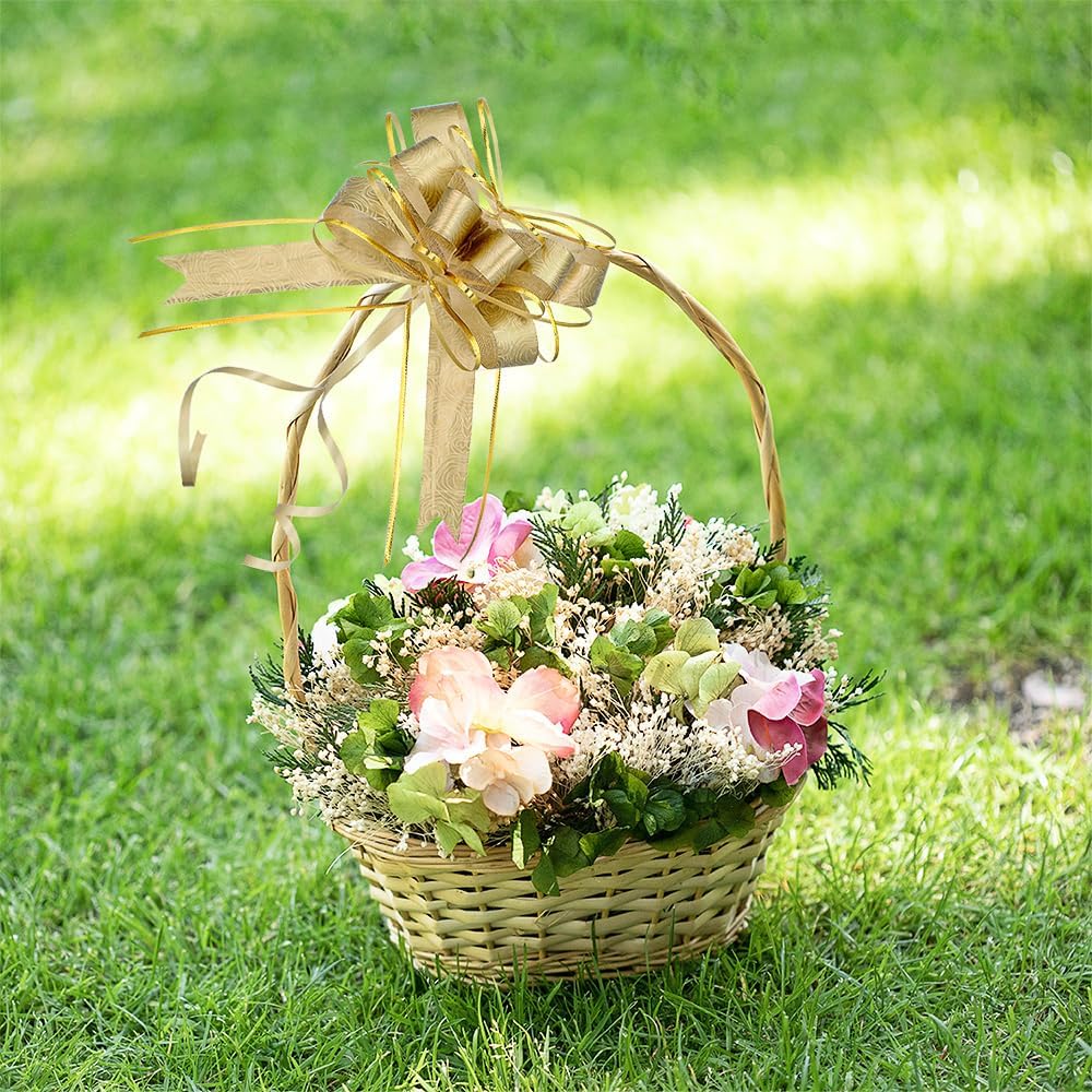 - Make Your Gifts Stand Out: Elevate your gift-giving with our versatile big gift bow! Designed to add a touch of charm and personalization, our bulk bows for gift wrapping are perfect for any recipient. Whether it's for men, women, boyfriends, girlfriends, husbands, wives, children, babies, friends, dads, moms, or even graduates, these gold pull bows are a delightful addition to any present. Show your love and appreciation to anyone who holds a special place in your heart with our beautiful bow
