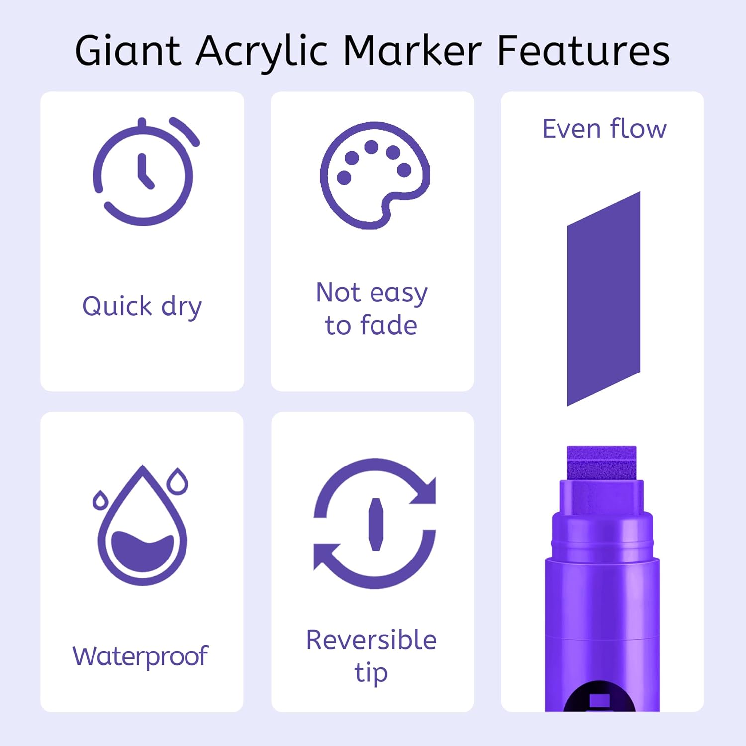 - Jumbo Permanent Markers Purple Set: BIGTHUMB jumbo purple markers are made with the highest-quality non-toxic, acid-free, no odor, no-leakage water-based acrylic ink that is waterproof, quick dry, long-lasting, and smooth ink flow. Each fat permanent marker conforms to ASTM d-4236 and EN-71 safety standards.