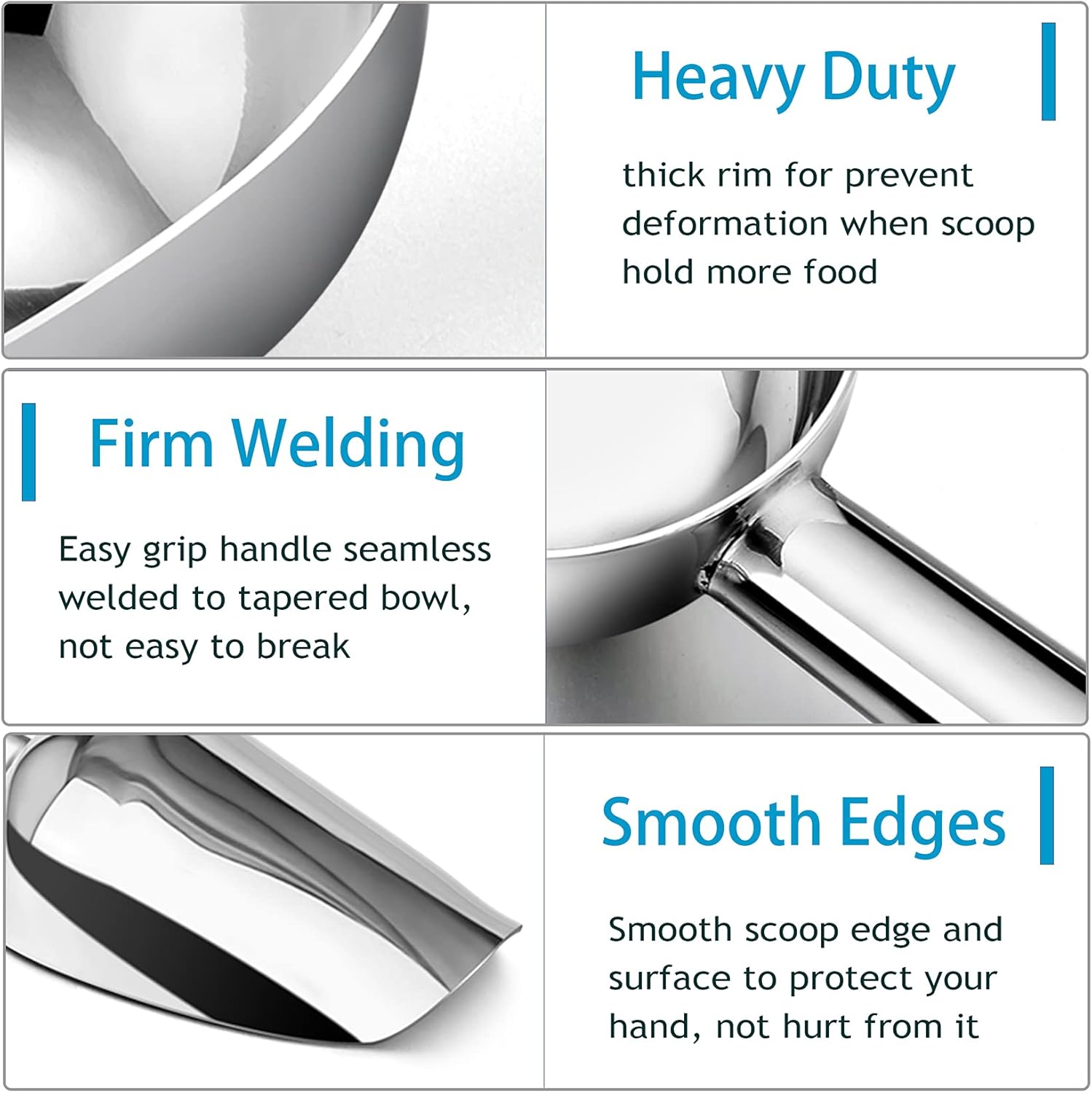 - 【Decorative & Versatile】The shiny silver scoop could match different styles of kitchens, Elegant appearance could be a embellishment to your kitchen, 3 piece set would meet your any needs, Scooping from ice cubes, candy, coffee bean to dry food, And even pet food, Great for a wide range of use in home