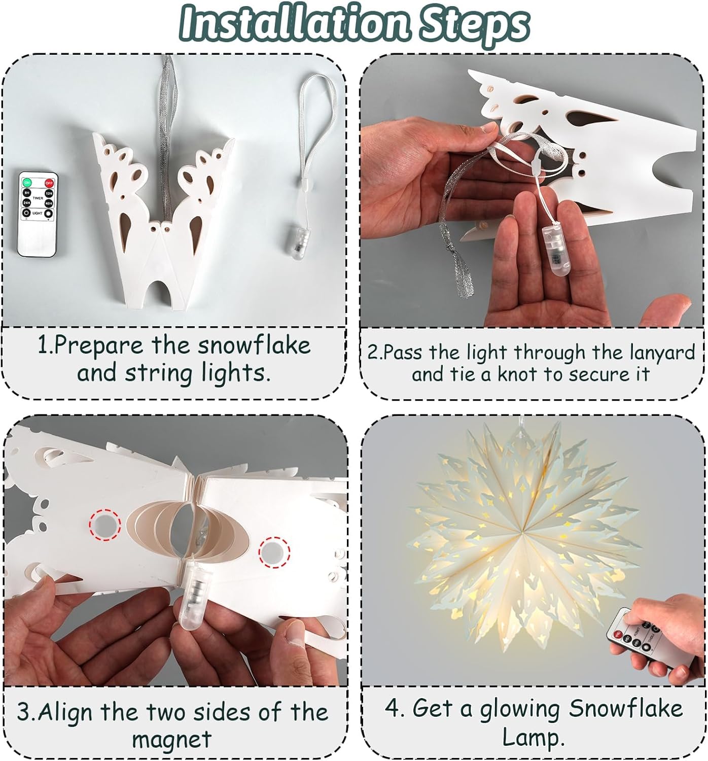 - Exquisite Craftsmanship: Crafted from premium thick paper material, these paper snowflake lanterns with lights are not easy to break or tear, durable and long-lasting. The high-quality craftsmanship ensures they remain sturdy throughout your festivities, while the detailed design adds sophistication and charm to any space