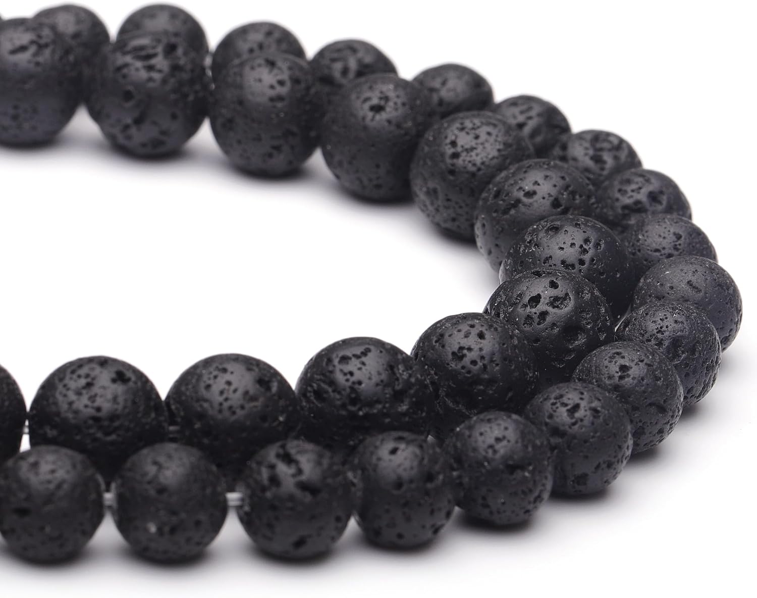8mm Natural Stone Beads for Jewelry Making,Black Lava Polished Smooth Round Gemstone Beads for Bracelet Necklace 15 Inch