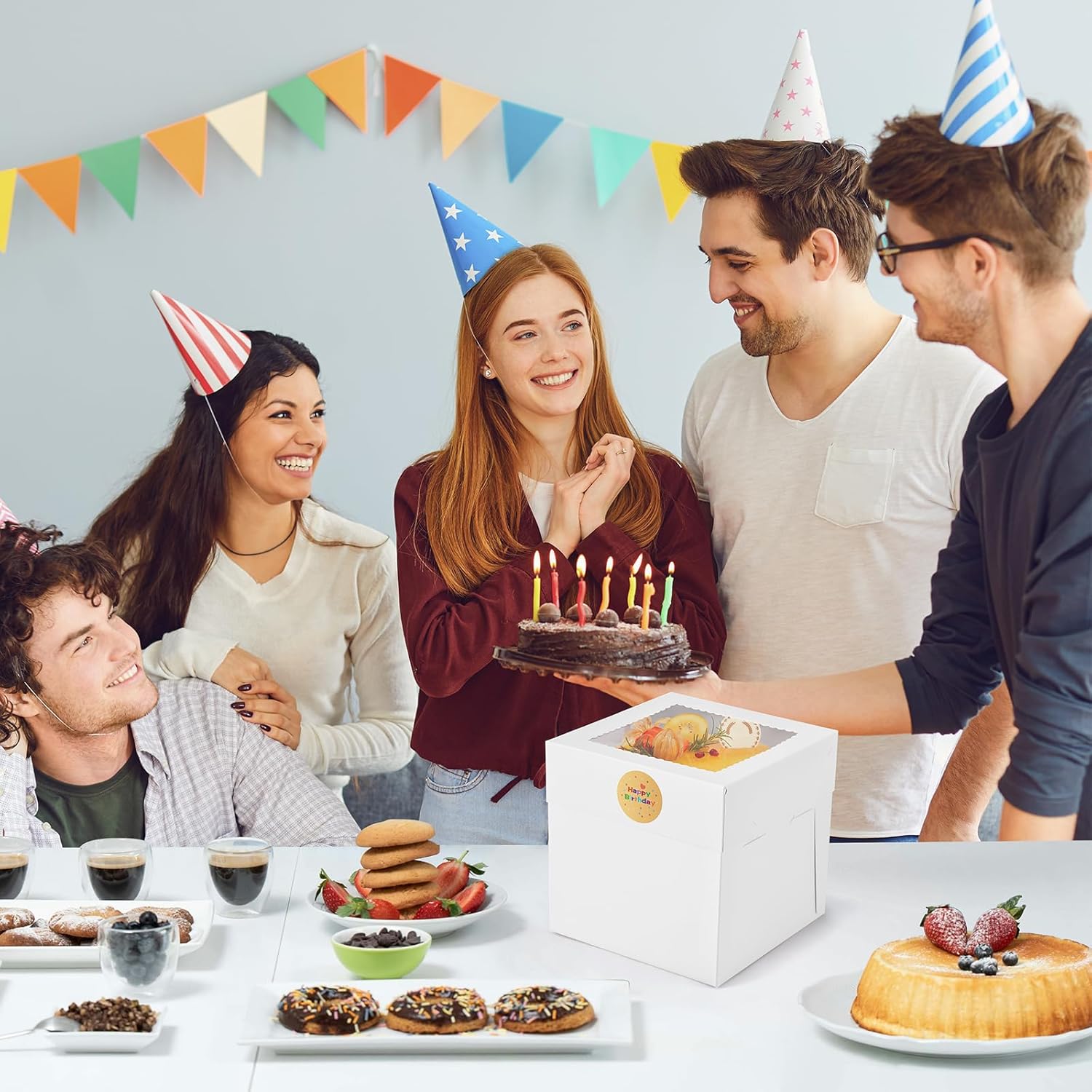 - Easy to Fold: Designed for convenience, these white cake safe transport box with window are flat and pre-folded, easy to assemble. Fold the cake pop boxes along the pre-folded crease, put in delicious cake, Blank sticker allows you to write warm message on it, attach the sticker to the bakery boxes, adds a personal touch to your gifts