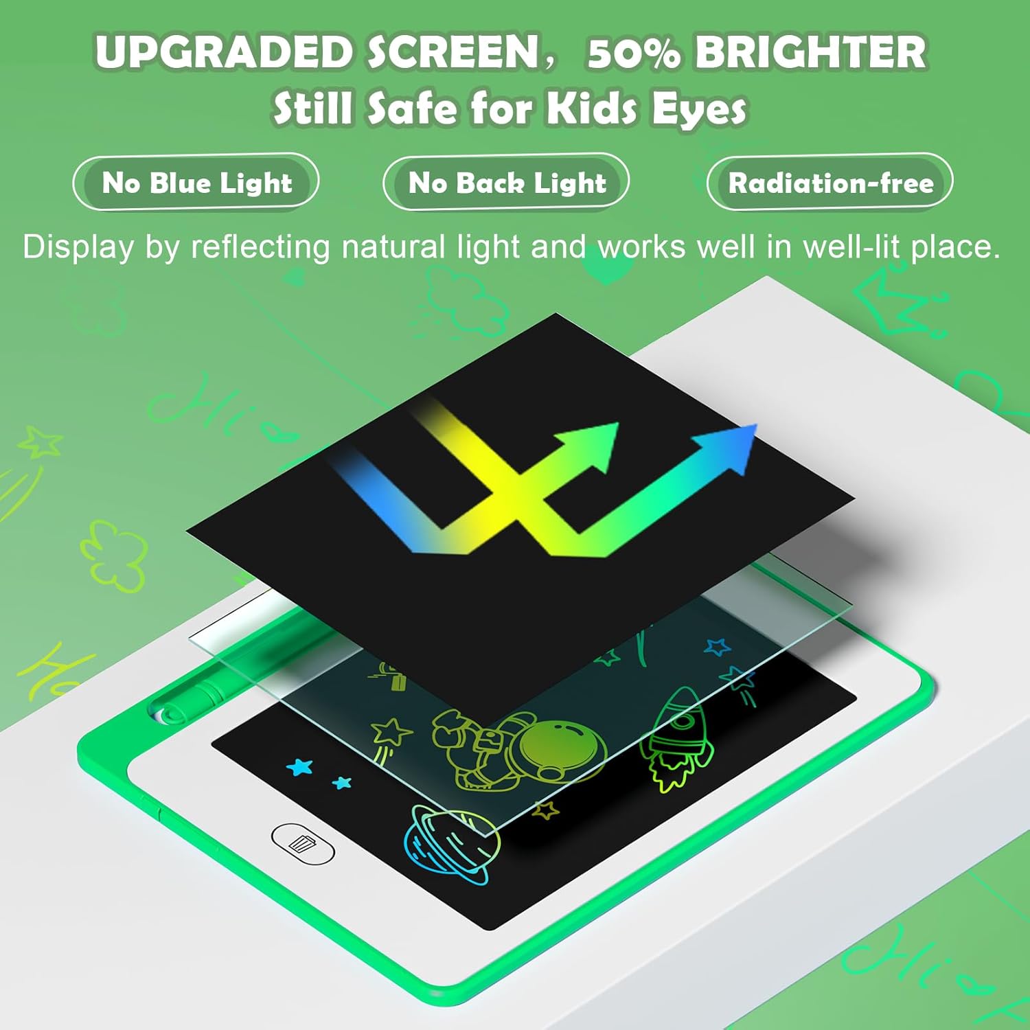 - Free children's imagination: The LCD writing board provides children with 6.5 inches of writing and painting space, liberating children's imagination. The eye protection color screen of the graffiti board provides a better painting experience and avoids long-term damage to children's eyes.