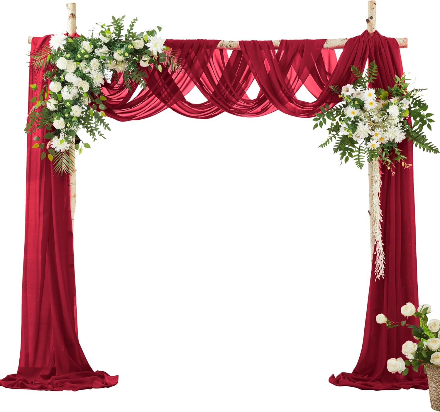 VACVELT Wedding Arch Draping Fabric - Burgundy Chiffon, 1 Panel Sheer Drapes, 30 Inch x 20ft Chiffon Backdrop Curtain, Outdoor Sheer Drapery for Ceremony Party Ceiling