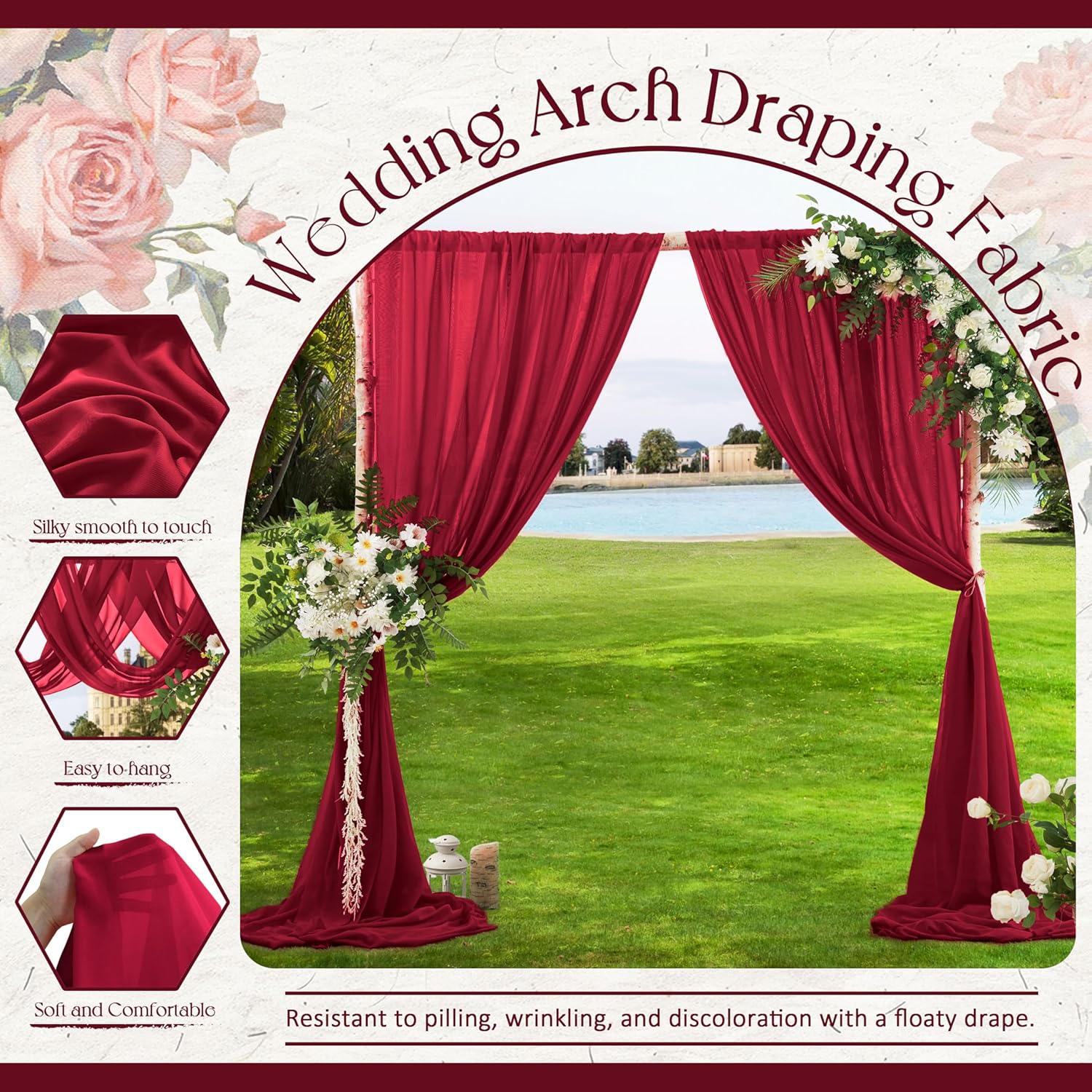 - SOFT CHIFFON FABRIC: Wedding arch sheer draping fabric is made of high-quality 100 percent wrinkle-free chiffon fabric. The chiffon backdrop drapes are silky smooth to touch and easy to hang, suitable for decorating wedding arches, party backdrops, photo backdrops. Machine washable, reusable, not easy to wrinkle and fade.