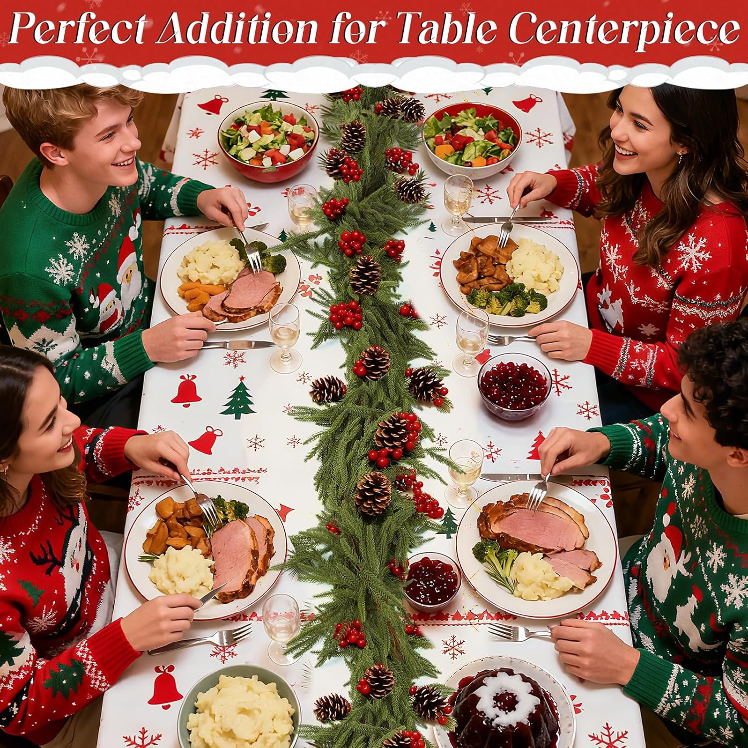 - SUFFICIENT SIZE: Measuring 12 ft long, this Christmas garland provides ample length to cover large areas, whether draped over a mantle, around a porch, or used as a centerpiece on your dining table. Its flexible design allows you to easily adjust and arrange it to create your nice holiday scene.