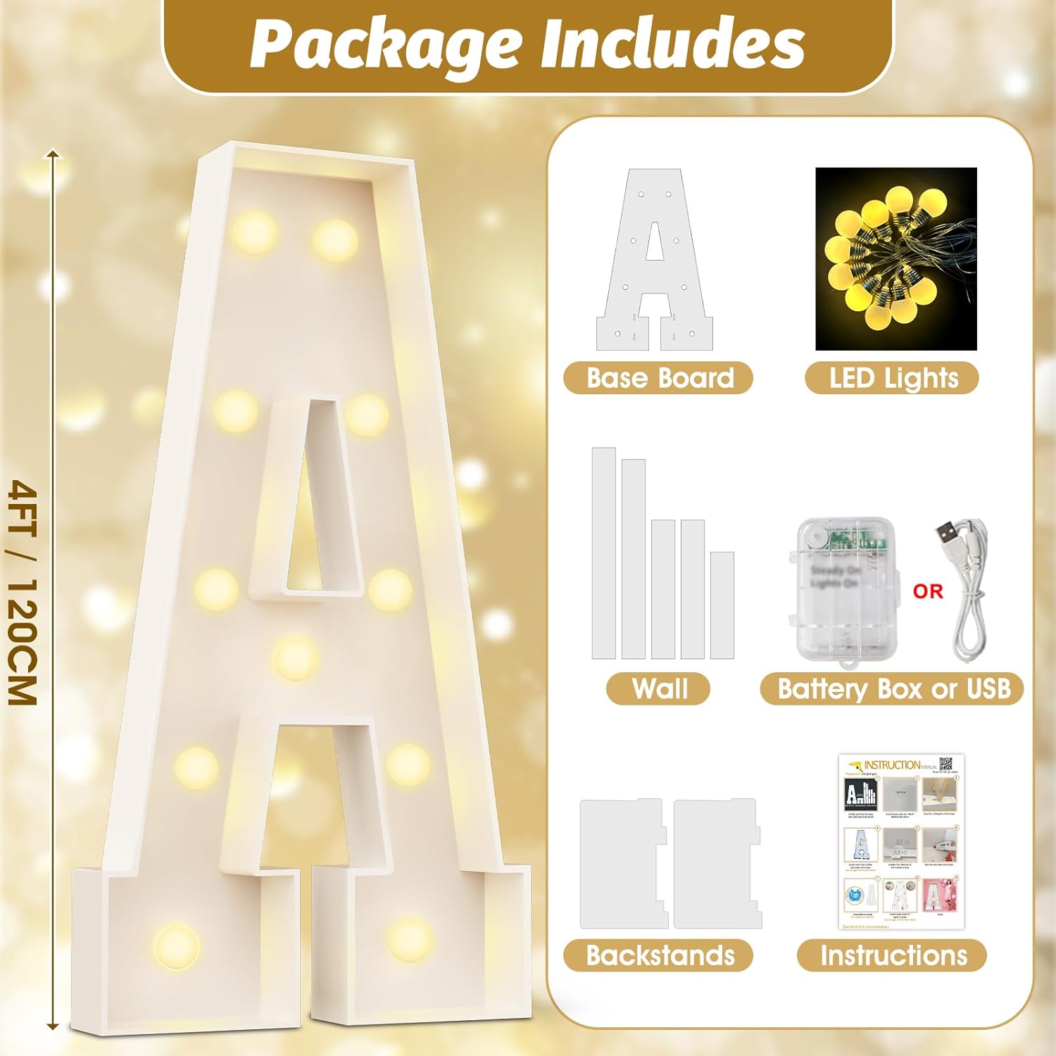 - 【After-sales service】The 4ft light up letter package includes Pre-cut foam boards, light bulbs, corresponding LED string lights, and instructions.If you find any problems, please contact us, such as broken foam board, broken bulb,we will definitely provide you with a satisfactory solution.