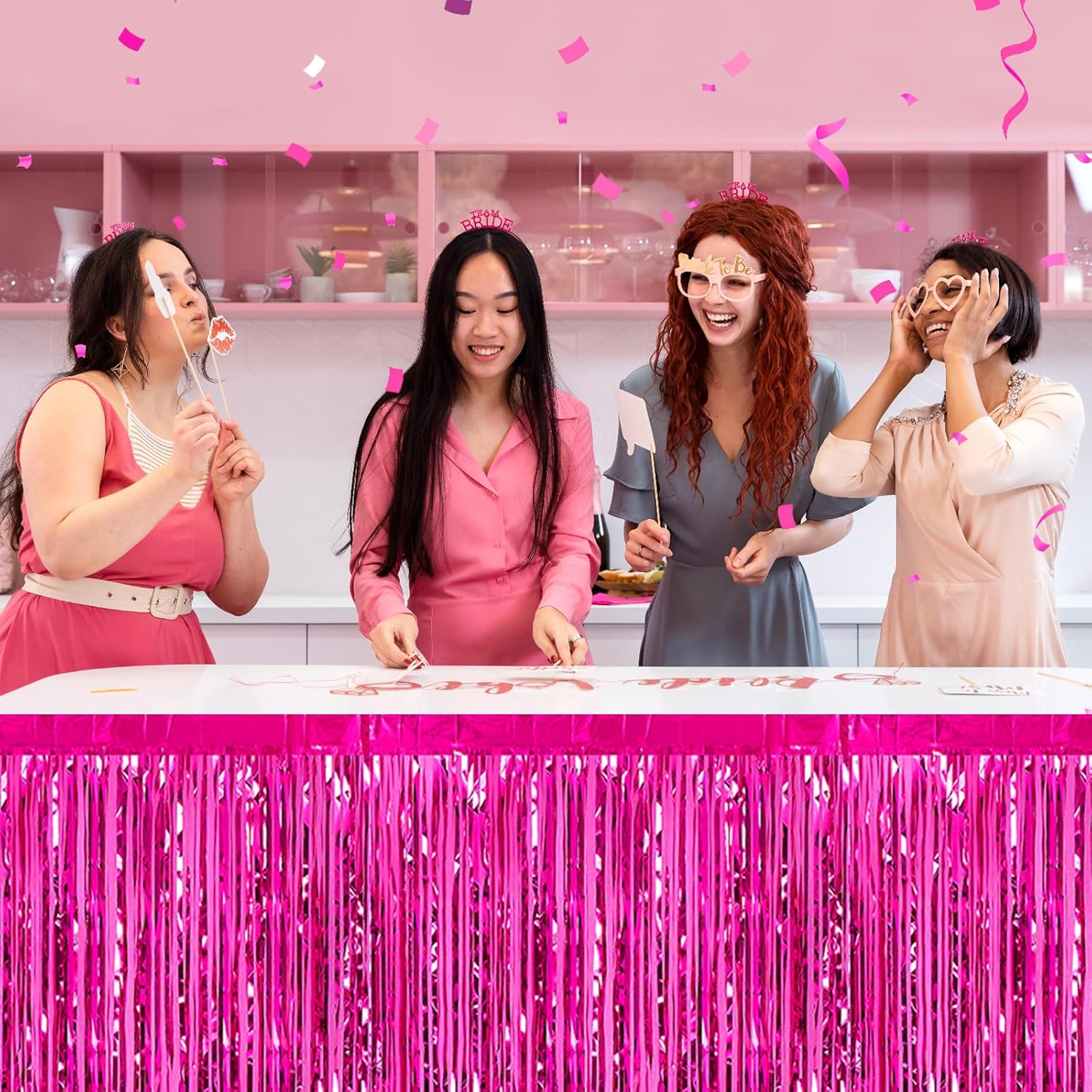 - Beautiful decoration: you can use these tinsel fringe table skirt to decorate a classroom, the stage for school program, a homecoming float, a wedding decoration, birthday party, Disco party, baby shower, halloween, christmas, new year's eve, bachelorette party, anniversary Memorial, Hollywood Party, independence Day, Carnival Party, Bridal Shower, Graduation and more.