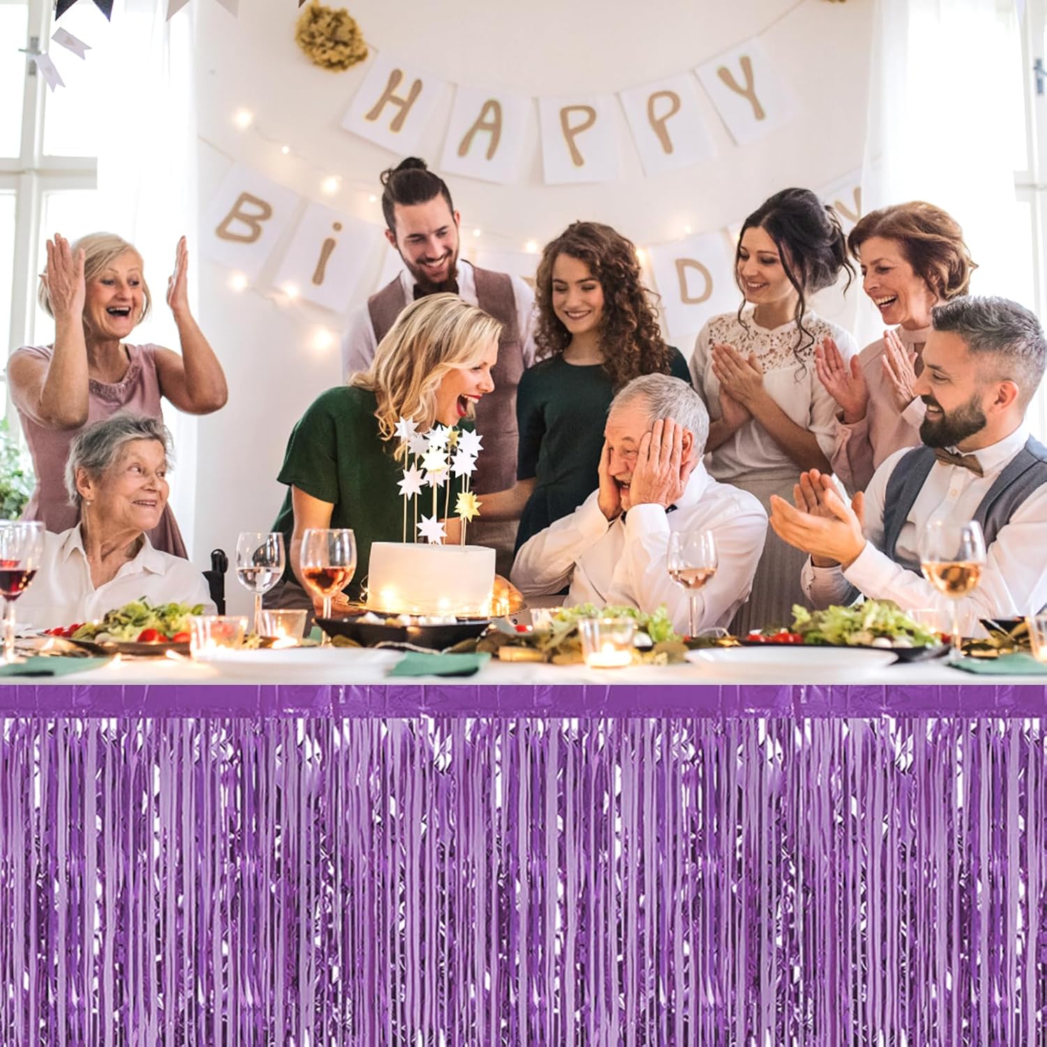 3 Pack 29 x108 Inch Light Purple Foil Fringe Table Skirts Metallic Banner for Tinsel Streamer Garland Backdrop for Parade Floats Wedding Thanksgiving Birthday Christmas New Year Party Decoration