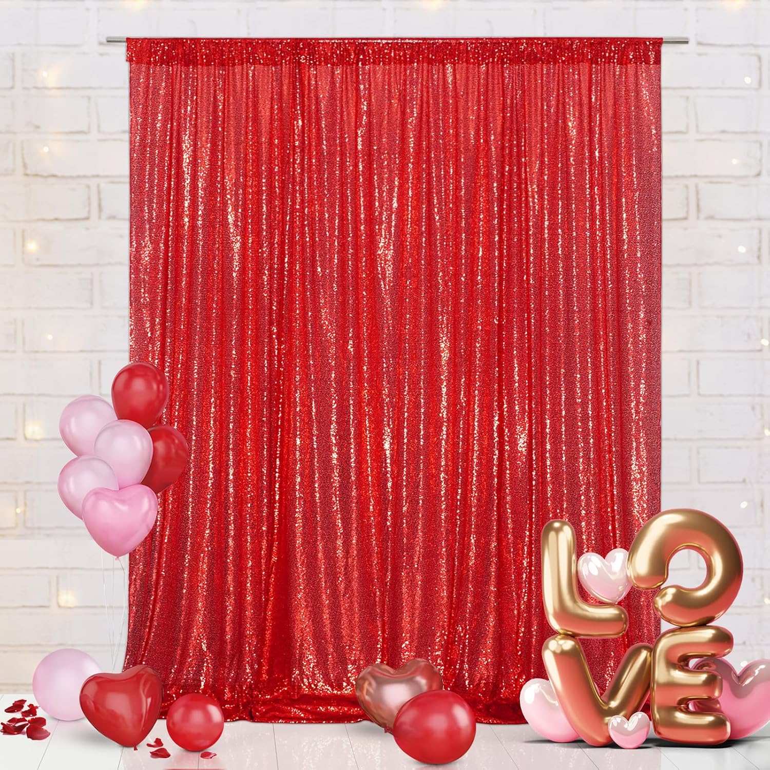 Eternal Beauty Red Sequin Backdrop, 8x10 Ft Glitter Background Curtains for Christmas Shimmer Photography Party Wedding Birthday Back Drop Decor