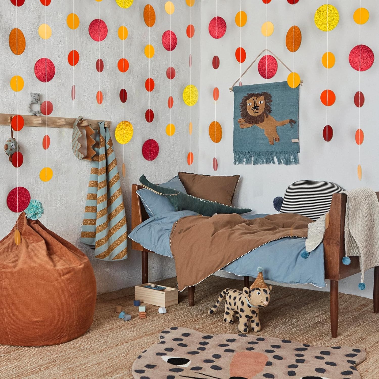 - 【Warm & Festive Fall Decor】 Capture the cozy essence of autumn and festive holidays with our Orange-Red Glitter Dot Garland. Ideal for Halloween parties, Thanksgiving gatherings, autumn weddings, baby Showers and seasonal decorations, this garland enhances your space with rich, warm tones.