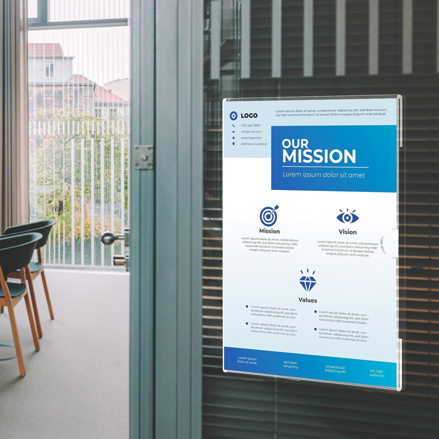 - ✔ 【Widely Used】The sign holder’s transparent offers a superb display information effect with an 8.5x11 inches paper. It will apply to virtually any flat surface such as drywall, metal, plastic, wood, and glass wall mounted.