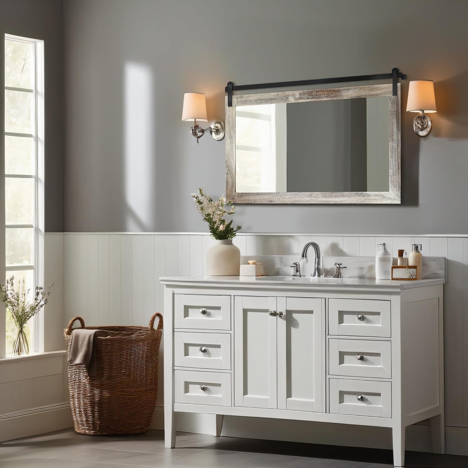 - VINTAGE DESIGN: This farmhouse mirror was inspired by a barn door and designed. It is a perfect combination of rustic and industrial style, which can make your home warm and inviting with the atmosphere of a farmhouse